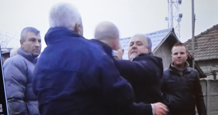 După vreo două ore de plimbat prin comună, în care am împărţit calendare şi pliante, eram împreună şi cu viceprimarul de la Castranova, domnul Adrian Biţînă, au apărut trei sau patru maşini din care au coborât vreo 15-20 de persoane, care au început să ne ameninţe, să ne înjure, că nu avem ce căuta în comună. La un minut a apărut şi maşina poliţiei, şeful de post, cred că ăsta a fost norocul nostru. În acel moment ei ne bruscau. Ne-au trântit pe acolo. La un moment dat a apărut şi primarul din localitate, domnul Cristescu Iulian. Se vede şi din filmare, în momentul în care a apărut primarul acele persoane au prins un pic de curaj, au început din nou să ne bruscheze, să ne înjure şi să ne ameninţe. Domnul acela, care mă bruschează, se vede pe imagini, m-a ţinut de mână, poliţistul era între mine şi primar, primarul l-a împins pe poliţist şi mi-a dat cu pumnul. Pe motiv că nu am ce să caut în acea comună. Cât despre afişele de care spun ei că au fost rupte, puteţi să mergeţi în comună să vedeţi că nu există absolut niciun stâlp, fără cel puţin două afişe roşii. Alte afişe, de la alte formaţiuni politice, nu există în acea comună pentru că au fost îndepărtate de angajaţii primăriei, puşi de primar. Noaptea, angajaţii de la Apă, de la Pază, cei de la 416 (n.r. asistaţii social), n-au ce să facă, sunt puşi de primar şi fac curăţenie la celelalte formaţiuni politice. Acum, s-o luăm cât de cât logic. Era în plină zi, noi mergeam pe stradă cu o portavoce să iasă lumea la poartă. Noi împărţeam pliante, era lumea la poartă. Să meargă două persoane în spate să rupă afişe e puţin … Să fim serioşi! Nu suntem chiar atât de proşti să rupem  afişe în văzul lumii într-o comună în care ştim că primarul este agresiv. Relaţia mea cu această persoană (n.r. primarul) a fost una bună. Eu am fost la el în casă, am colaborat tot timpul. Nu am nicio explicaţie. A fost din senin. Persoanele din comună sunt speriate de el”, a spus Răducea.