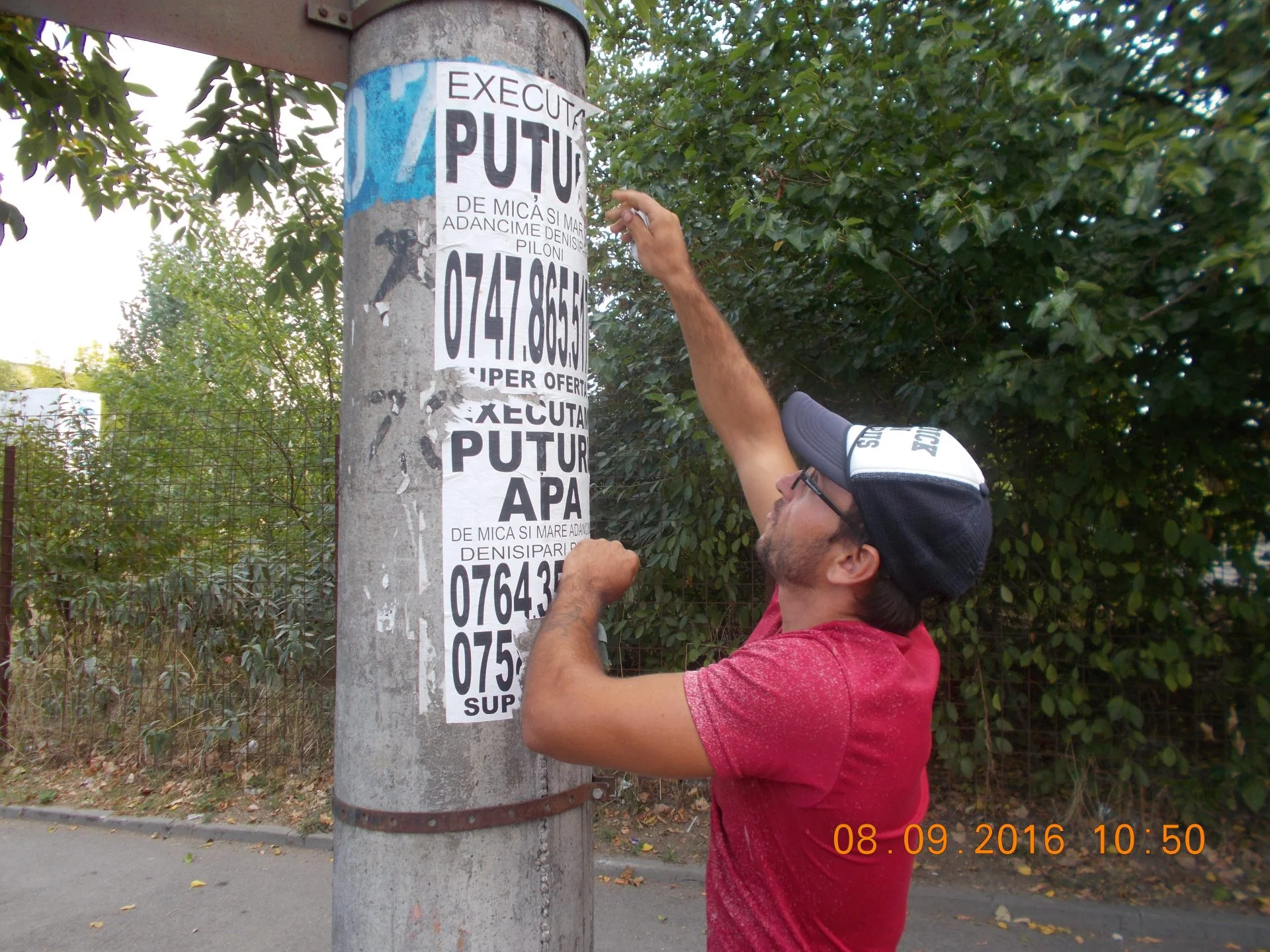 Doi bărbați din Ilfov au fost amendați de polițiștii locali din cadrul Secției Ordine Publică ”Valea Roșie” – Poliția Locală a Municipiului Craiova, după ce au fost surprinși că lipeau pe stâlpii de electrivitate afișe inscripționate ”foraje puțuri”.