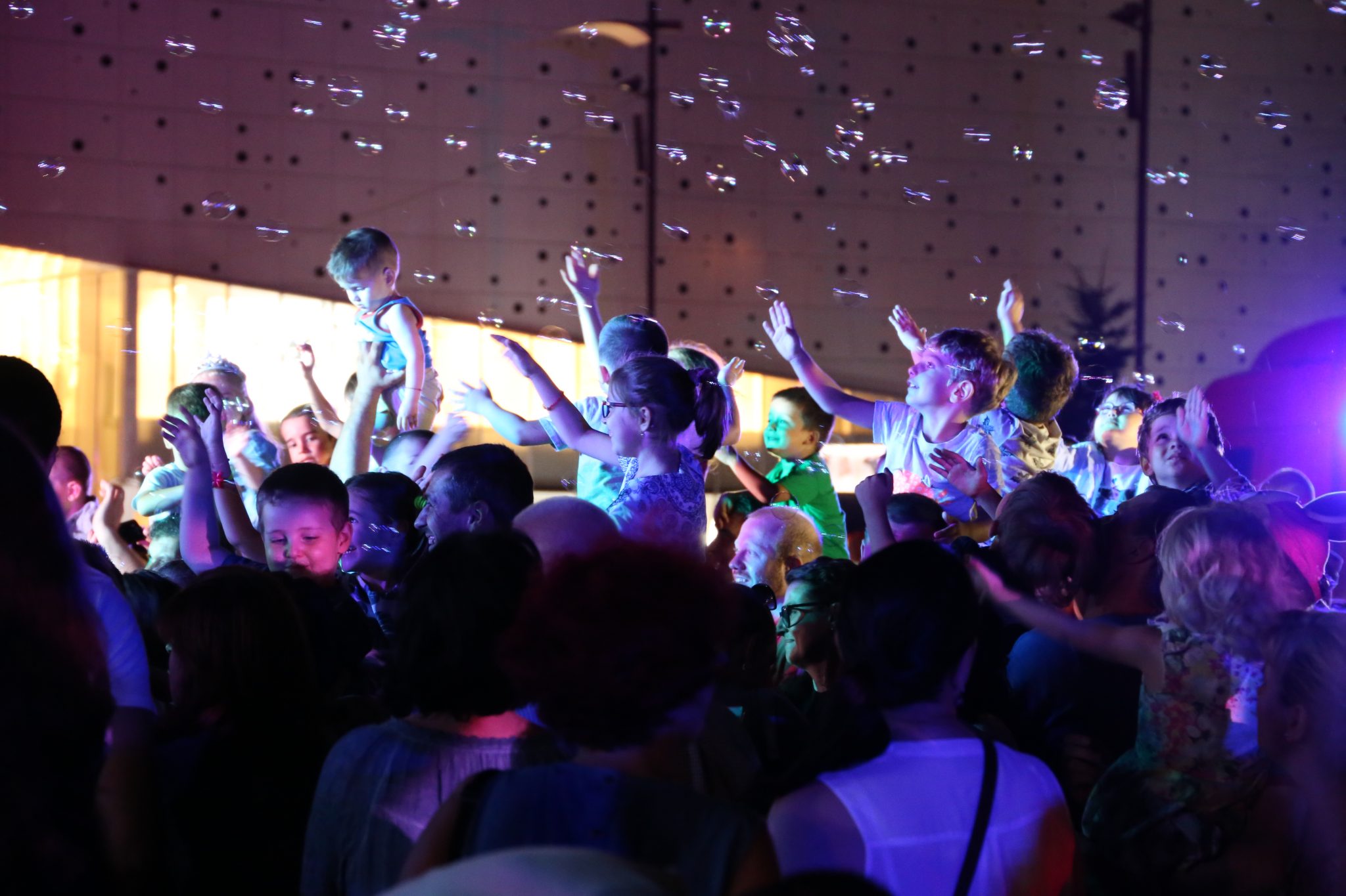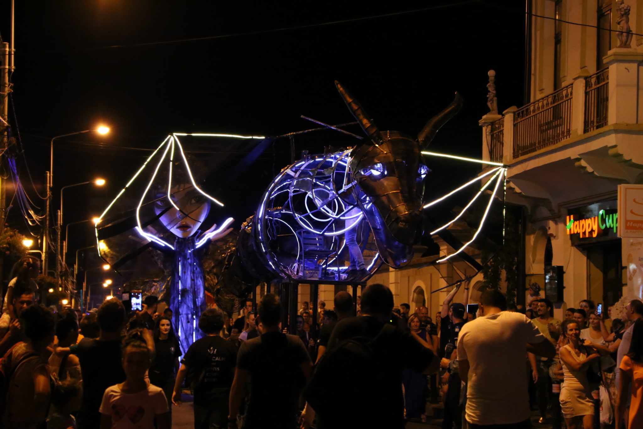 Parada Păpușilor s-a încheiat în Piața Mihai Viteazul unde, printr-o proiecție tematică, pe clădirea Palace s-a dat startul oficial al festivalului.