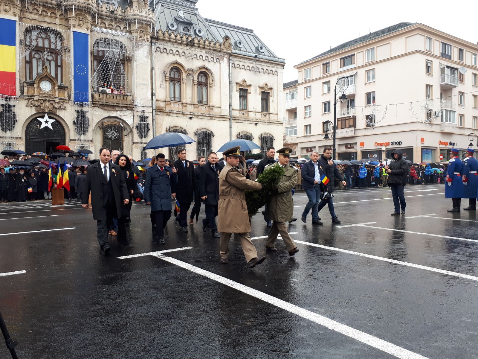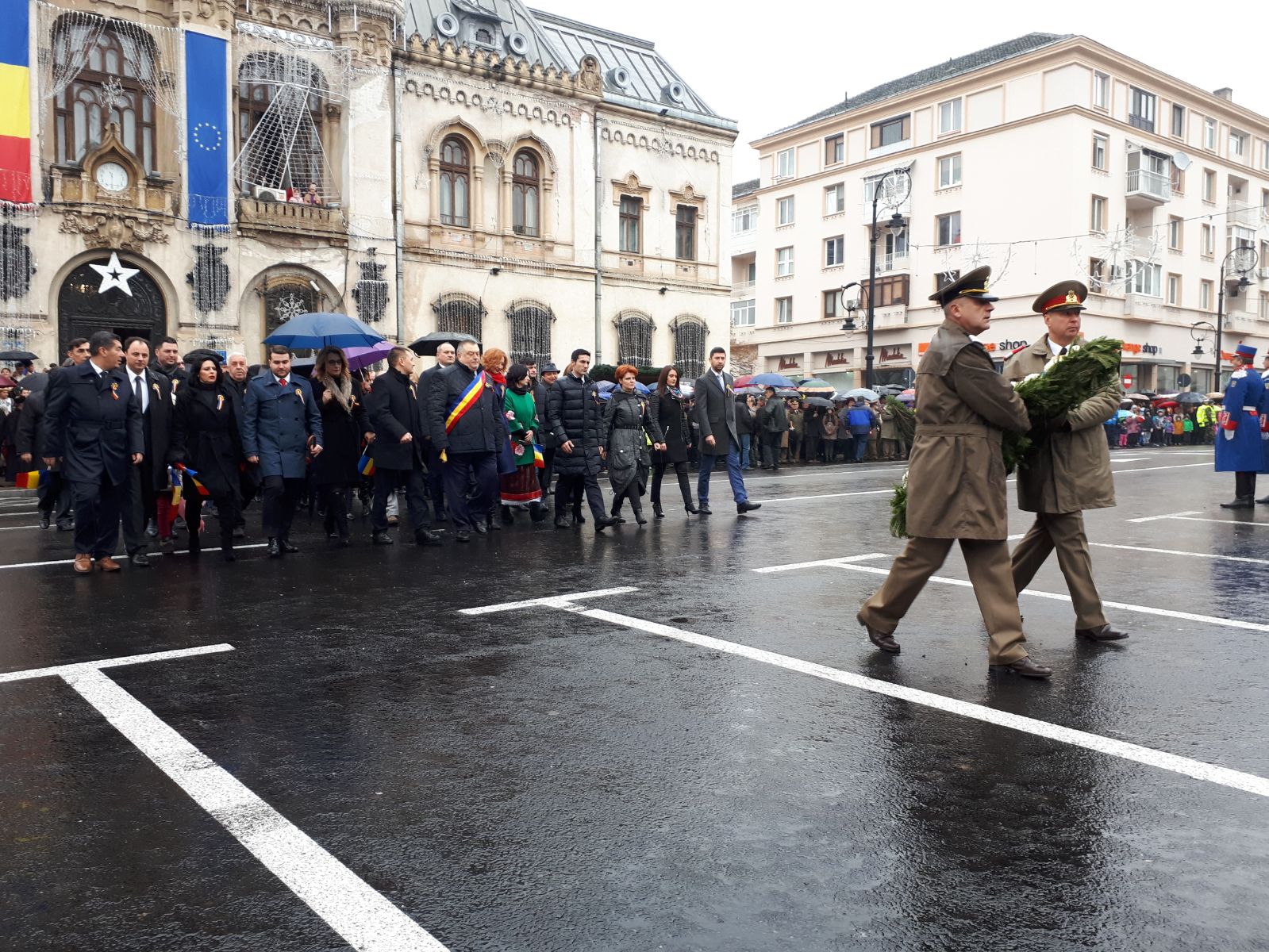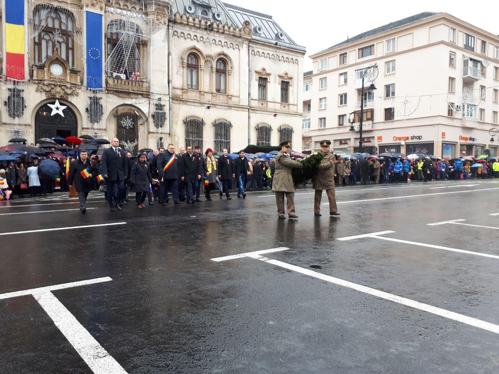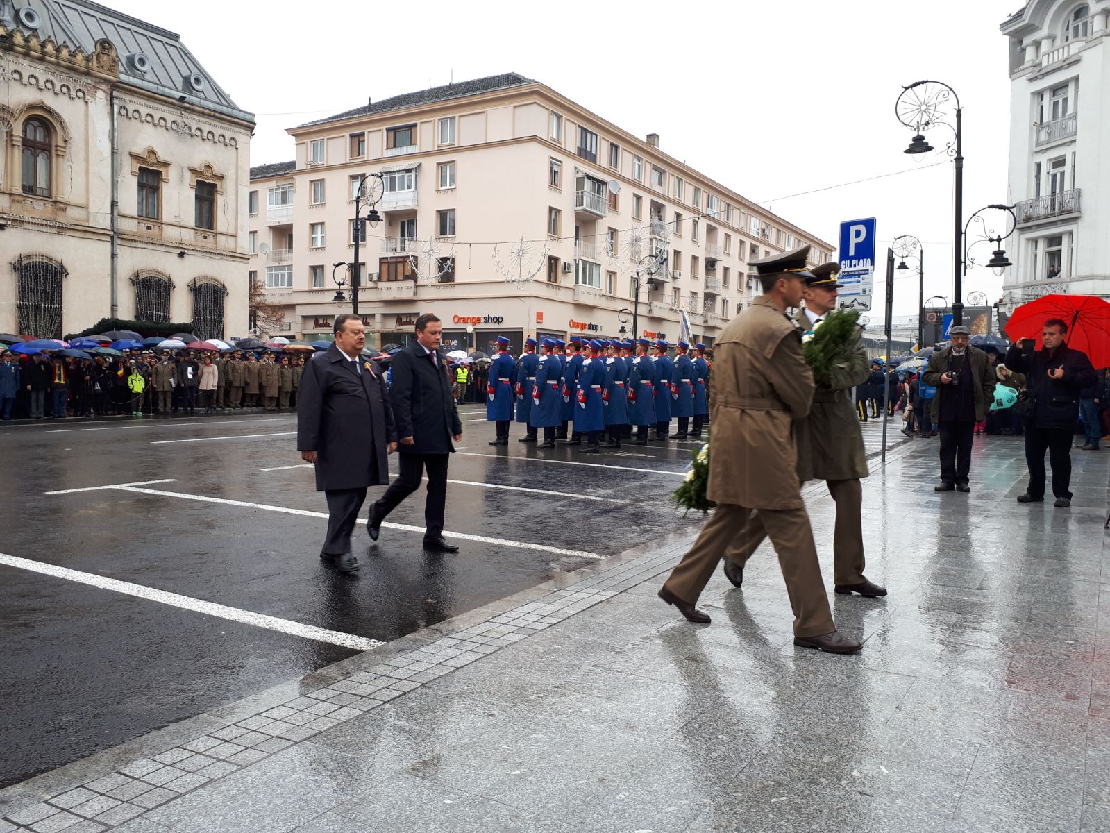 Sărbătorim astăzi împreună Ziua Națională a României, cu recunoștință pentru sacrificiul înaintașilor noștri, care au făcut posibilă România Mare, dar și cu încredere și speranță în viitorul pe care noi înșine alegem să-l construim, în acord cu valorile democrației și libertății. Iar momentul de astăzi este cu atât mai important cu cât dăm startul manifestărilor pregătite de o țară întreagă pentru centenarul pe care îl vom marca, împreună, în 2018. Sunt ani în care am reușit să devenim un stat important pe harta Europei, un membru de încredere al Națiunilor Unite și al Uniunii Europene. Iar pentru noi, craiovenii, celebrarea de astăzi a Zilei Naționale capătă și mai multe semnificații, având alături, pentru prima oară, contingente importante din cadrul Alianței NATO.