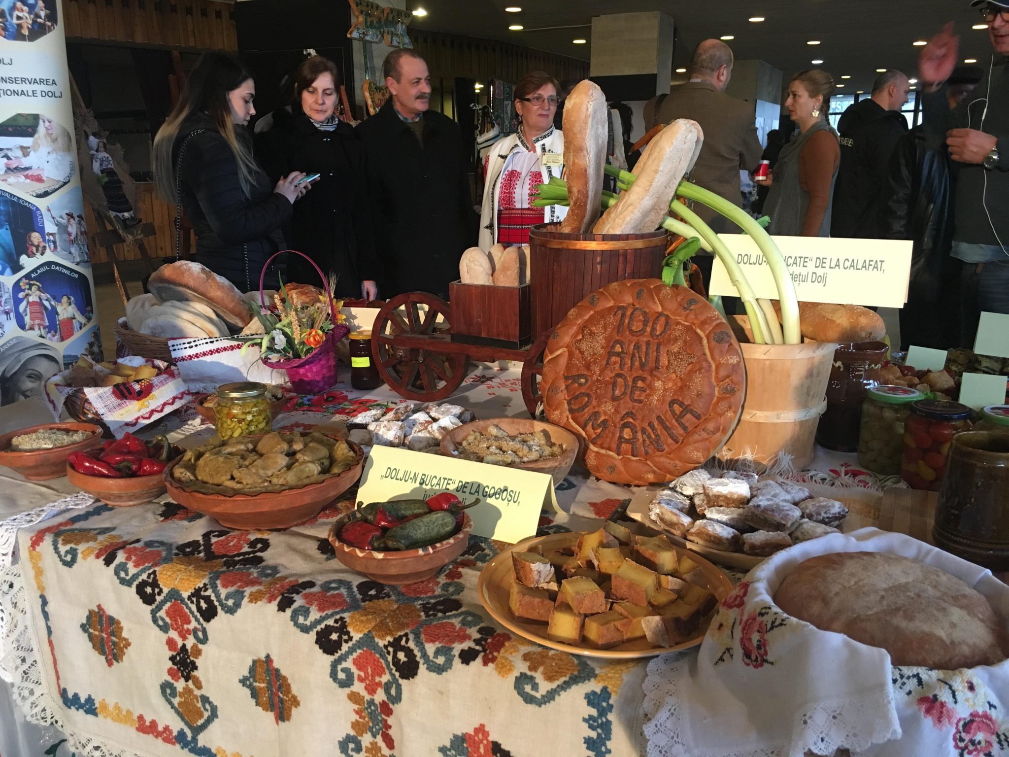 „Avem preparate gastronomice specifice nouă pentru a se vedea ce este specific acestei zone a Văii Dunării. Am vrut să prezentăm oamenilor lucruri frumoase, care au legătură cu Oltenia, cu Craiova, cu noi, ca români, pentru că dedicăm această expoziţie Centenarului Unirii. Doamnele care s-au ocupat de aceste bunătăți sunt din Calafat și Giurgița și a gătit și Sofia Negulescu, cea care a venit cu minunatele costume populare”, a precizat Amelia Etegan, directorul Centrului Județean pentru Conservarea și Promovarea Culturii Tradiționale Dolj.