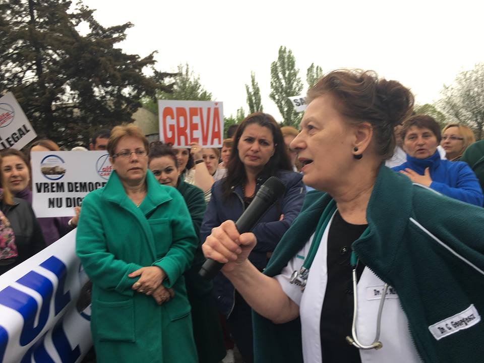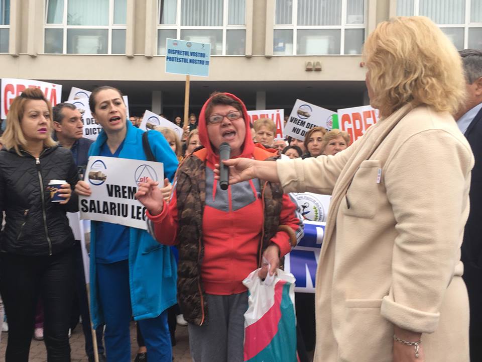 Pe parcursul derulării acțiunii de protest, în cea de-a două oră, au mai coborât și medici în fața unității spitalicești. Unul dintre aceștia este doctora Mihaela Mitricună, medic primar secția ATI. „Am muncit o viață întreagă pe nimic. Acum sunt obligată să stau pe prelungire pentru a o scoate cumva la capăt. Pasiunea, iubirea pentru ceea ce fac mi-a dat putere să rezist. Munca în Reanimare a reprezentat viața mea. Munca noastră este grea. Îi știu pe toți de acolo, respectiv infirmieri, brancardieri, asistenți și colegi medici mai tineri. Ne chinuim să aducem oamenii la viață și o facem în echipă. Ne dorim să fim respectați și plătiți cum trebuie. Serviciile medicale sunt subevaluate și nu este bine. Sunt aici din respect pentru colegii mei, pentru echipă”, a spus Mitricună.