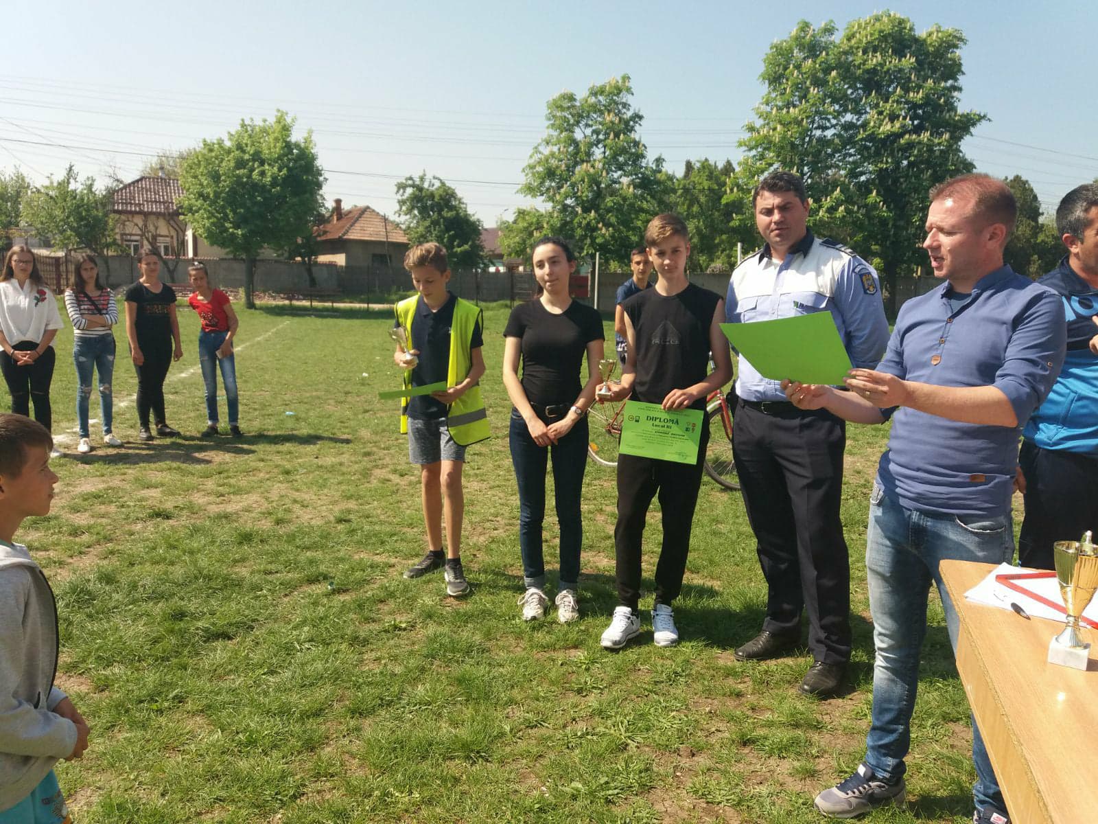 Cu acest prilej, a fost organizat şi un concurs pe teme rutiere la care au participat 54 elevi şi 3 cadre didactice de la Şcolile Gimnaziale Giubega, Galiciuica şi Perişor, activităţile desfăşurându-se pe terenul de sport din comuna Giubega şi pe DN 56.