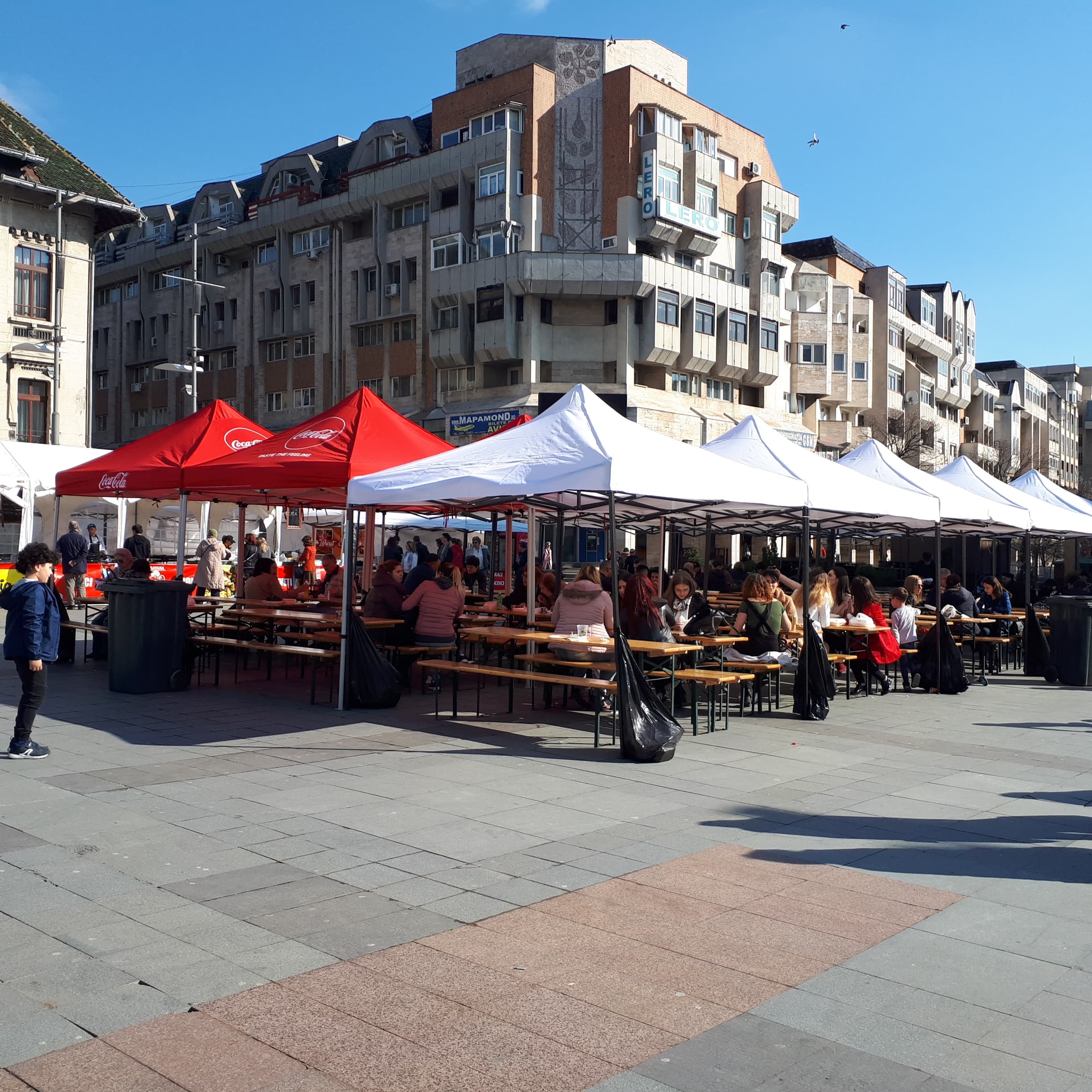 În centrul oraşului, de exemplu, au fost mai mulţi oameni la festivalul culinar, care are loc în Craiova în aceste zile, decât la protest.