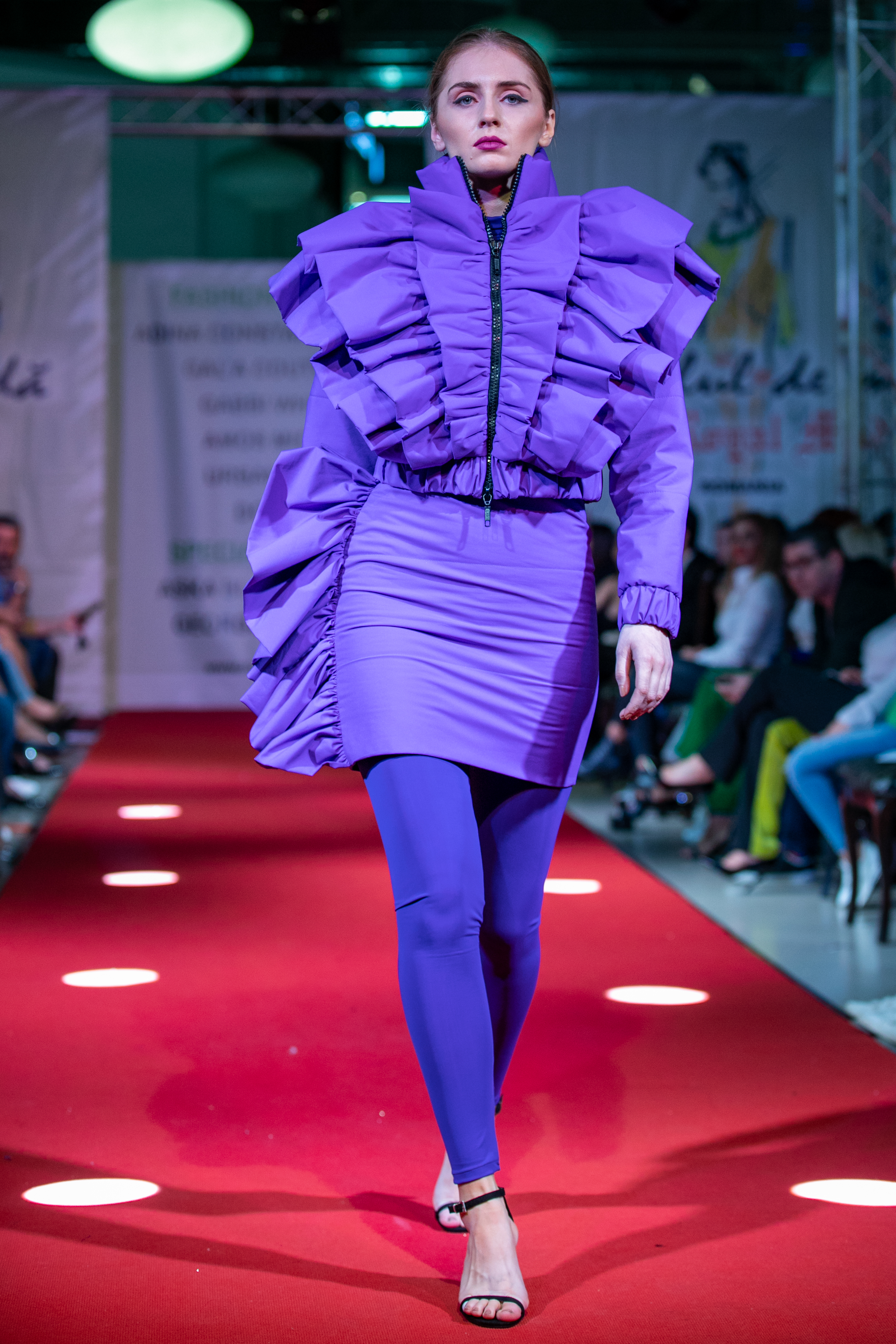 Spectatorii au continuat sa aplaude vesminte cu o pronuntata valenta artistica si cu accentul pus pe linia compozitionala, forma,volum, acordul cromatic si nu in ultimul rand socul vizual, si anume colectia Adinei Constantinescu,“Aria d’Amore”.