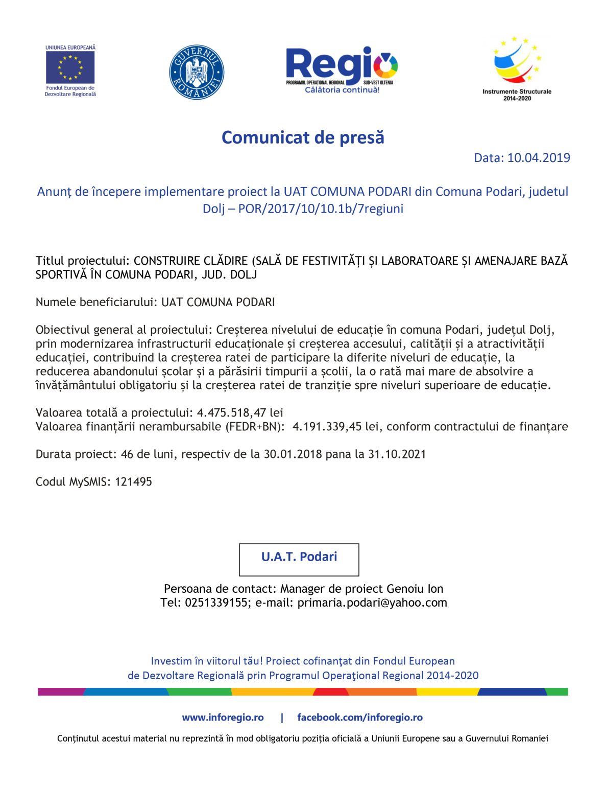 EconomieAnunț de începere implementare proiect la UAT COMUNA PODARI din Comuna Podari, județul Dolj – POR 2017/10/10.1b/7regiuni Jurnalul Olteniei 2 martie 2023 Share SHARE Jurnalul Olteniei See Full Bio Distribuie acest articol Facebook Whatsapp Whatsapp Email Copy Link Print Articolul precedent Sesizarea conflictului dintre Parlament şi ÎCCJ pe completurile specializate, amânată Articolul următor Dragnea nu a venit la ÎCCJ Ultima ora A dat bancnote false cu „Prop Copy”: Percheziții în Mehedinți 5 decembrie 2025 Căprioare și ponei, de Crăciun, în Parcul Romanescu 5 decembrie 2025 Gorj: agresori reținuți și monitorizați electronic 5 decembrie 2025 Suspect de tentativă de agresiune reținut de Poliția Dolj 5 decembrie 2025 Locuință din Gorj cuprinsă de flăcări 5 decembrie 2025 Distribuție Oltenia: Oltenii, mai interesați de energie și sustenabilitate 5 decembrie 2025 Semimaratonul Craiovei 2025: Record de participanți 5 decembrie 2025 Sancțiuni de peste 40.000 lei și o activitate suspendată la Băbeni 5 decembrie 2025 Oltenia, sub cod galben de vânt. Avertizare ANM 5 decembrie 2025 Lansare proiect: „Împădurirea unui teren agricol în comuna Dobrești, beneficiar SEINEA ILEANA-MIHAELA „ 5 decembrie 2025