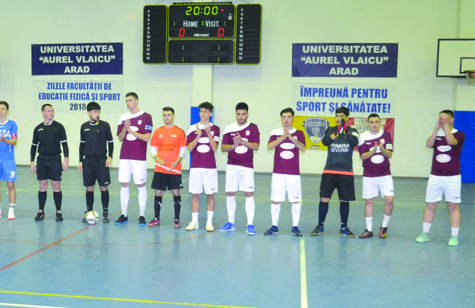În Sala de Sport a Universității Aurel Vlaicu din Arad, elevii antrenați de Hugo Moutinho au fost învinși cu 7-6 de Șoimii Șimand. Arădenii au codus cu 2-1 la pauză, au avut avantaj și de 2 goluri (6-4), severinenii au egalat, dar au primit gol în ultimul minut și altfel au pierdut partida, la limită. Ghinionul s-a ținut scai, pe toată durata jocului, de CFR’43, care a ratat numeroase ocazii, dar și-a introdus și de 3 ori mingea în propria poartă.