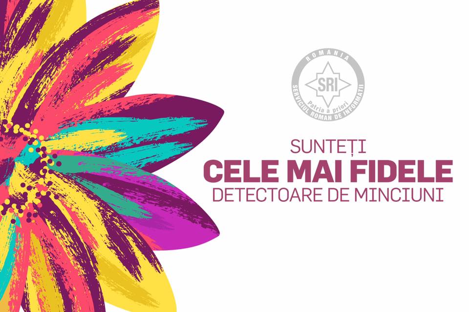 „Sunteţi cele mai fidele detectoare de minciuni”, se arată în mesajul publicat de 8 martie pe pagina de Facebook oficială a SRI, alături de o inimioară.