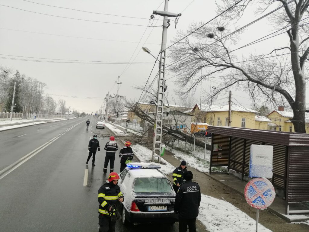 ISU intervine in Filiasi si Craiova, pe Ctin Argetoianu, pentru degajarea unor copaci.