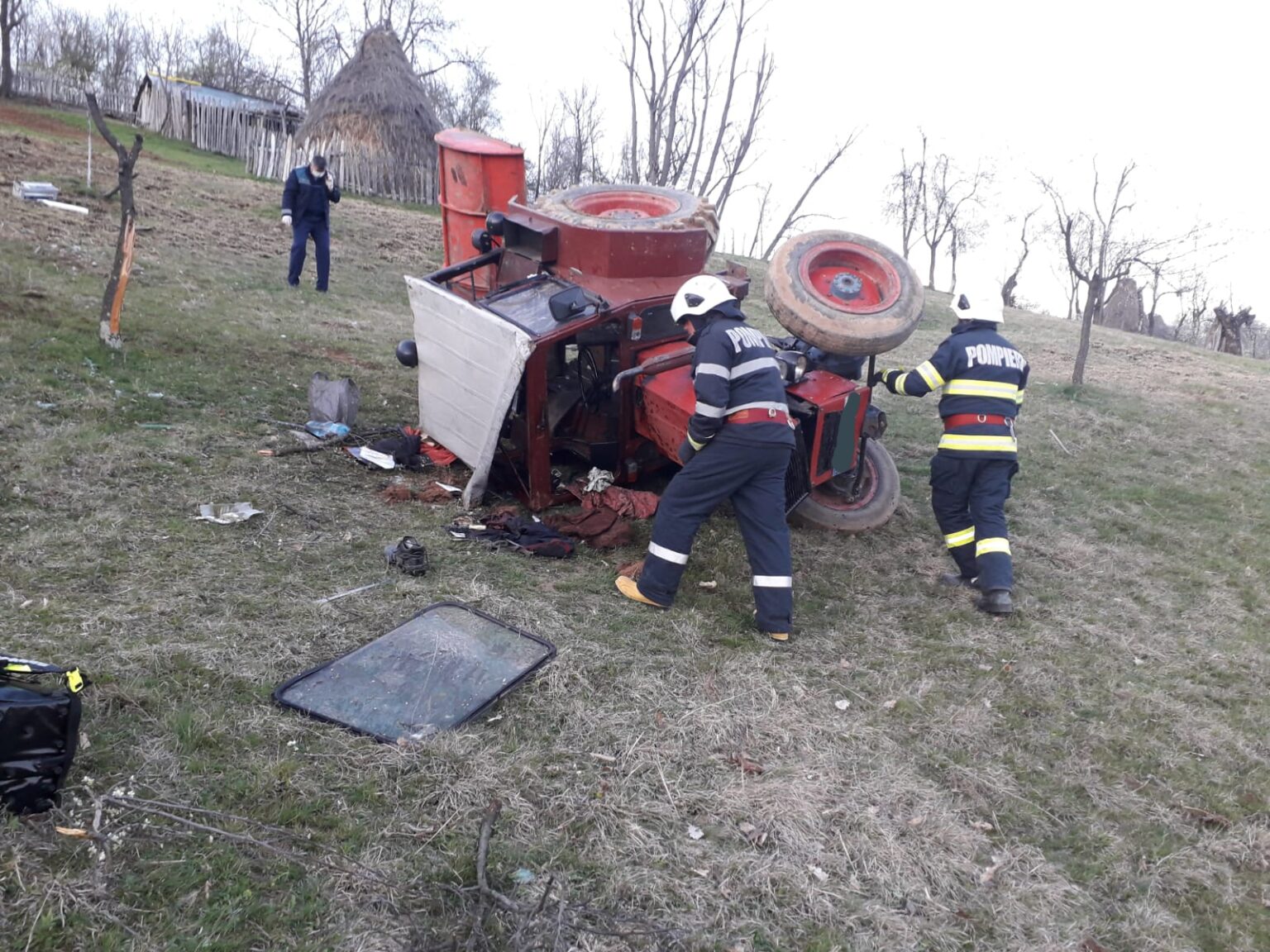 Marți seară, două echipaje de pompieri din cadrul Gărzii Baia de Aramă au intervenit cu o ambulanţă SMURD şi o autospecială cu modul de descarcerare pentru scoaterea bărbatului prins sub tractorul propriu.