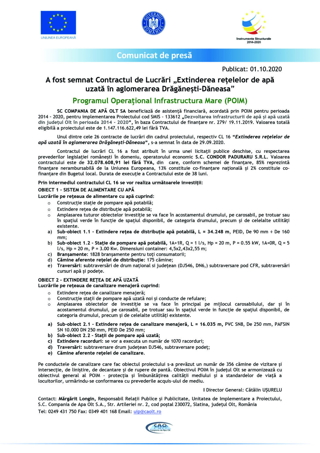 ActualitateOltOlteniaA fost semnat Contractul de Lucrări „Extinderea rețelelor de apă uzată în aglomerarea Drăgănești – Dăneasa” Jurnalul Olteniei 6 decembrie 2022 Share SHARE Jurnalul Olteniei See Full Bio TAGGED:apa uzataCAOdaneasadraganestiextindere reteleolt Distribuie acest articol Facebook Whatsapp Whatsapp Email Copy Link Print Articolul precedent Deficitul de Vitamina D ar putea crea complicații în cazurile de COVID-19 Articolul următor COVID-19: 37 de decese au fost raportate, în ultimele 24 de ore Ultima ora Gorj: agresori reținuți și monitorizați electronic 5 decembrie 2025 Suspect de tentativă de agresiune reținut de Poliția Dolj 5 decembrie 2025 Locuință din Gorj cuprinsă de flăcări 5 decembrie 2025 Distribuție Oltenia: Oltenii, mai interesați de energie și sustenabilitate 5 decembrie 2025 Semimaratonul Craiovei 2025: Record de participanți 5 decembrie 2025 Sancțiuni de peste 40.000 lei și o activitate suspendată la Băbeni 5 decembrie 2025 Oltenia, sub cod galben de vânt. Avertizare ANM 5 decembrie 2025 Lansare proiect: „Împădurirea unui teren agricol în comuna Dobrești, beneficiar SEINEA ILEANA-MIHAELA „ 5 decembrie 2025 Flăcări în toiul nopții la Berislăvești! Pompierii vâlceni au salvat locuința cuprinsă de incendiu 5 decembrie 2025 Un fost jucător de la Universitatea Craiova, inclus în echipa lunii noiembrie, în Liga 2 5 decembrie 2025