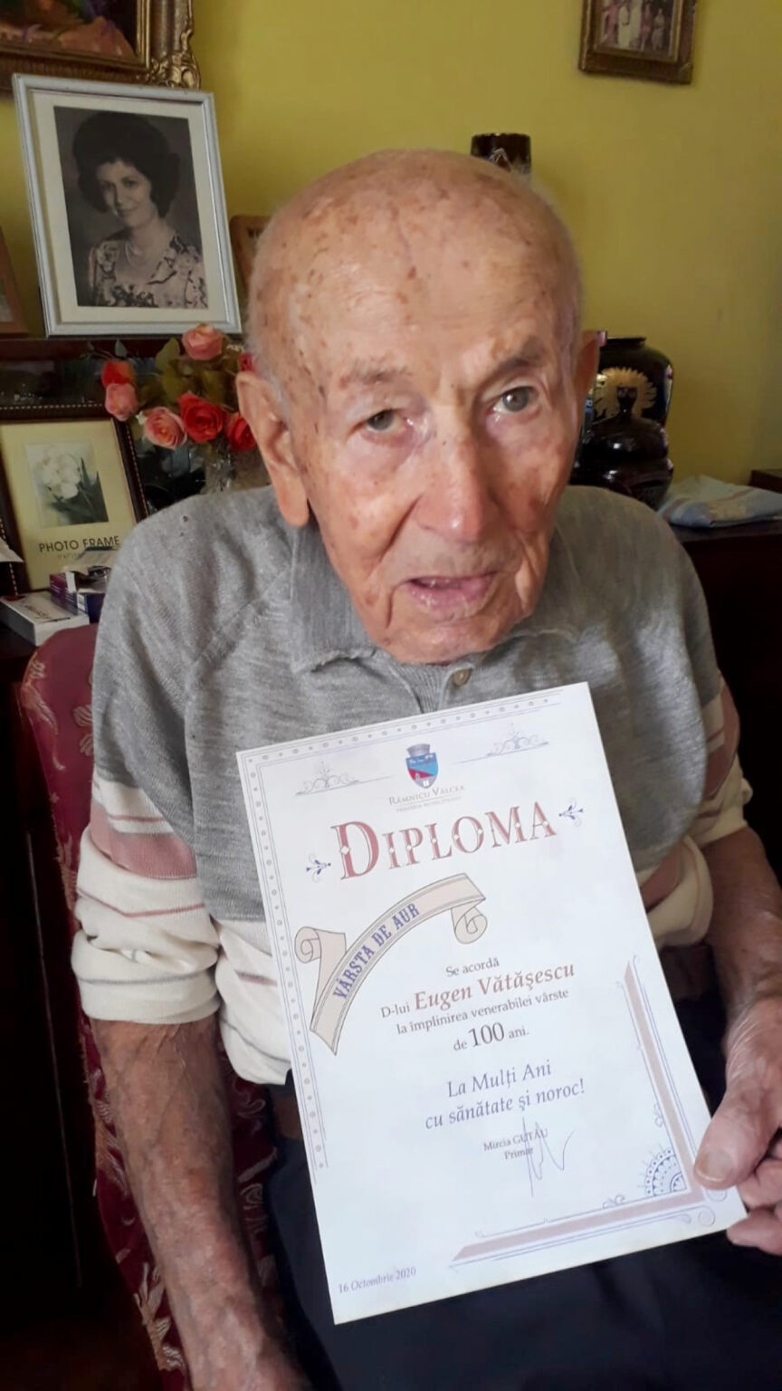Râmniceanul Eugen Vătăşescu a împlinit 100 de ani și a fost onorat cu diploma „Vârsta de Aur”