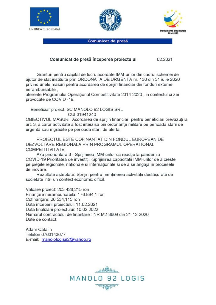 EconomieGorjComunicat de presă începerea proiectului „SC MANOLO 92 LOGIS SRL” Jurnalul Olteniei 24 martie 2021 Share SHARE Jurnalul Olteniei See Full Bio Distribuie acest articol Facebook Whatsapp Whatsapp Email Copy Link Print Articolul precedent Cursuri privind Taina Botezului Articolul următor Un târgujian își caută soția disperat! Femeia a plecat singură de acasă Ultima ora Cea de-a VII-a ediție a Semimaratonului Craiovei a avut loc sâmbătă, 18 octombrie 2025. 5 decembrie 2025 ANUNT PRIVIND ORGANIZAREA ACHIZITIEI DE UTILAJE . MINIEXCAVATOR – LOTUL 1, UTILAJ DE FORAT HIDRAULIC – LOTUL 2 – RELUATÃ 2 5 decembrie 2025 Modernizarea CF Filiași: Începe proiectarea 5 decembrie 2025 Testare gratuită HPV la Spitalul Județean Târgu Jiu 5 decembrie 2025 CE Oltenia raportează emisii scăzute de dioxid de carbon 5 decembrie 2025 DIICOT a destructurat un grup de proxenetism în Mehedinți 5 decembrie 2025 Legea pensiilor magistraților, atacată, din nou, la CCR 5 decembrie 2025 Magia Crăciunului Târgu Jiu: Seară de neuitat 5 decembrie 2025 A dat bancnote false cu „Prop Copy”: Percheziții în Mehedinți 5 decembrie 2025 Căprioare și ponei, de Crăciun, în Parcul Romanescu 5 decembrie 2025