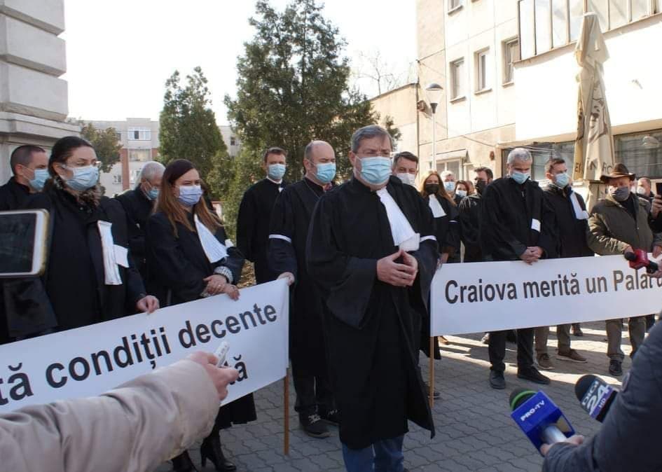 Avocații au afișat două mesaje în fața Judecătoriei: „Avocații solicită condiții decente în instanțele de judecată” și „Craiova merită un Palat de Justiție”, iar Lucian Săuleanu, decanul Baroului Dolj, și-a manifestat nemulțumirile față de felul în care a fost abordată această situație în ultimii 10 ani în care, spune acesta, nu s-a întâmplat nimic.