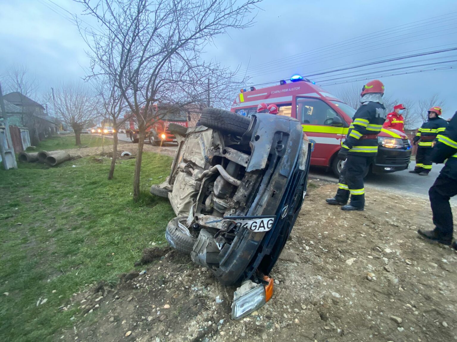 Autoturismul implicat în impact a fost găsit de pompierii olteni răsturnat în afara drumului. A fost identificată o singură persoană rănită în urma accidentului, pasager în mașină.