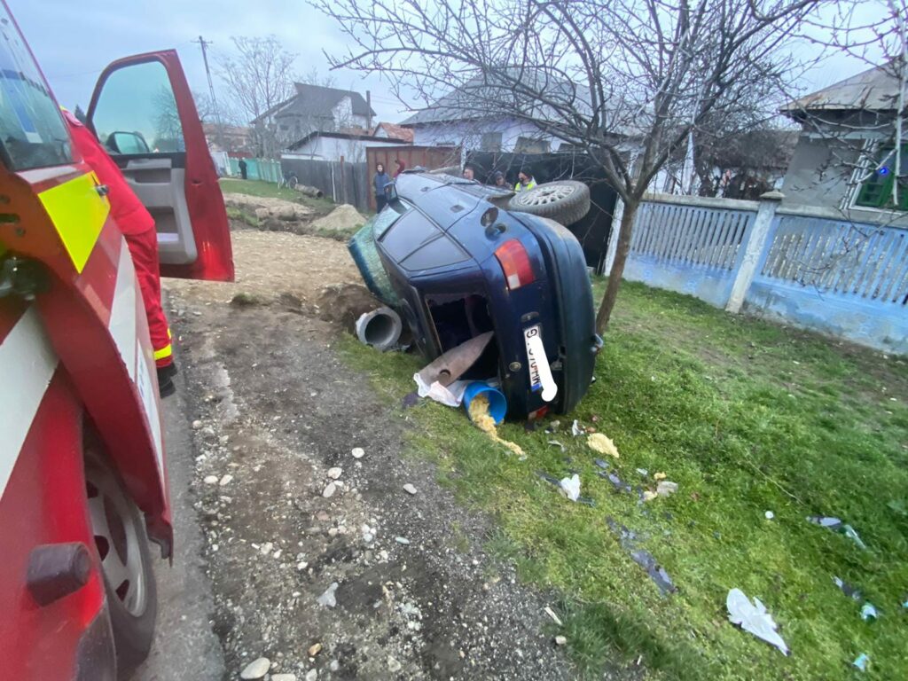 La sosirea echipajelor, autoturismul implicat în accident a fost găsit în afara carosabilului, răsturnat pe o parte, iar o persoană a fost găsită în afară acestuia, conștientă.