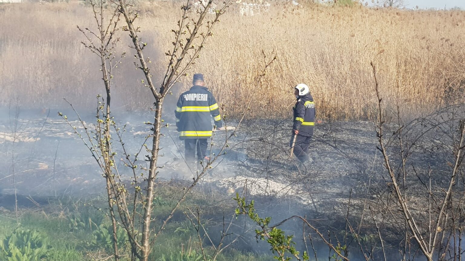 Mai multe gunoaie, vegetație uscată, dar și păpuriș au ars astăzi într-un incendiu la Mofleni. Două echipaje de pompieri au fost trimise la fața locului.