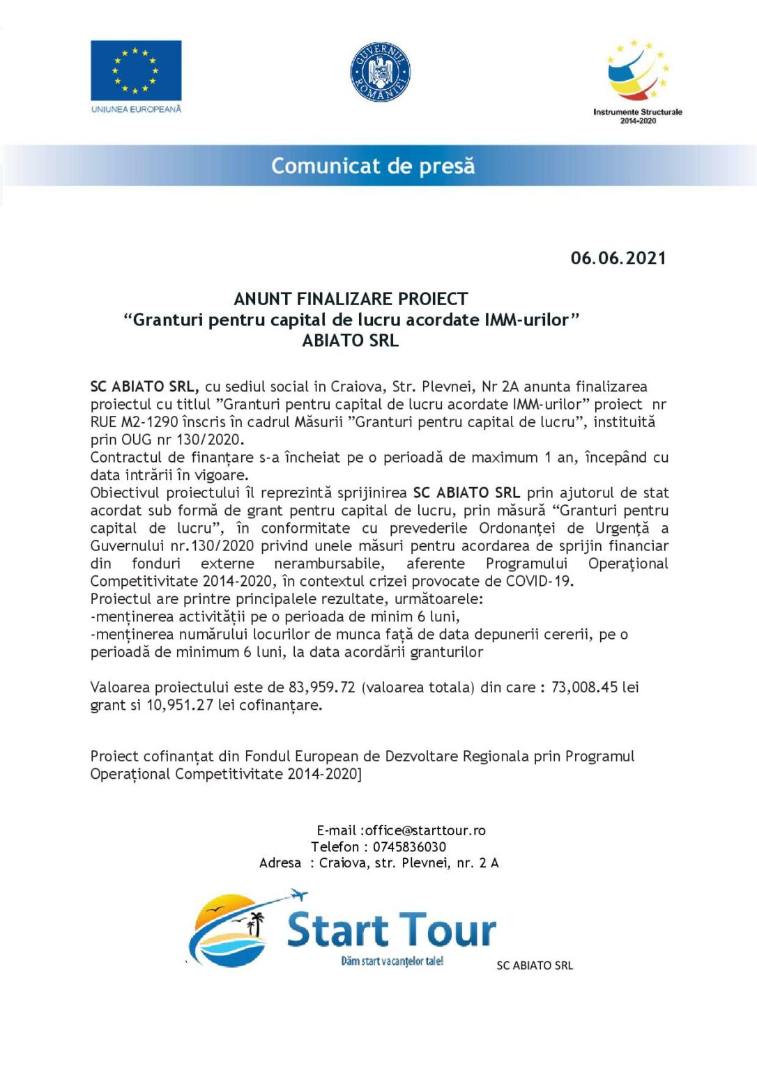DoljEconomieANUNT FINALIZARE PROIECT “Granturi pentru capital de lucru acordate IMM-urilor” ABIATO SRL Jurnalul Olteniei 7 iunie 2021 Share SHARE Jurnalul Olteniei See Full Bio Distribuie acest articol Facebook Whatsapp Whatsapp Email Copy Link Print Articolul precedent Jandarmii gorjeni au asigurat ordinea și siguranța la Campionatul Naţional de Viteză în Coastă Articolul următor Persoanele de peste 40 de ani își vor putea face analizele mai ușor de la 1 iulie Ultima ora Sarmalele tradiționale: Secretul gustului de Crăciun 22 decembrie 2025 Pericol pe drumurile publice din Gorj: șoferi băuți la volan, depistați în mai multe localități 22 decembrie 2025 Programul magazinelor și supermarketurilor de Crăciun 2025 22 decembrie 2025 Încă două moțiuni AUR, împotriva a doi miniștri-cheie 22 decembrie 2025 Marius Șumudică, mesaj pentru olteni: „Fac un apel la suporterii Craiovei” 22 decembrie 2025 Accident la Corabia: Un tânăr de 18 ani a murit după ce o mașină a intrat într-un stâlp 22 decembrie 2025 Consiliul Superior al Magistraturii nu poate fi revocat 22 decembrie 2025 Momente dificile pentru Valentin Mihăilă: „M-am săturat. Sper să găsesc soluția” 22 decembrie 2025 Conducte de irigaţii furate, în Dolj, după ce hoţii au săpat manual tranșee de 2 km 22 decembrie 2025 Mărturii inedite de la Revoluţia din 1989: Cum au schimbat oltenii numerele autobuzelor ca să nu fie atacați la București 21 decembrie 2025