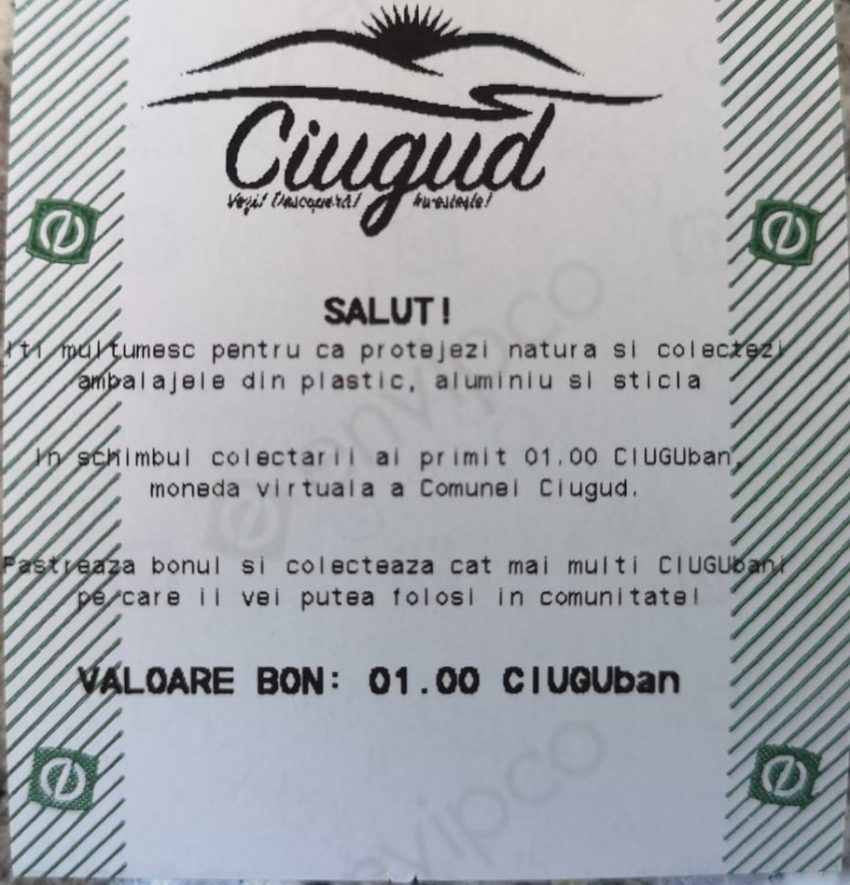 Localitatea, prima de acest fel din România, și-a creat propria criptomonedă, intitulată CIUGUban, ce poate fi transformată în bani fizici. Proiectul a fost gândit pentru a-i îndemna pe cei mici să colecteze selectiv și să recicleze, primind astfel în schimb o monedă virtuală, sub formă de bon valoric.