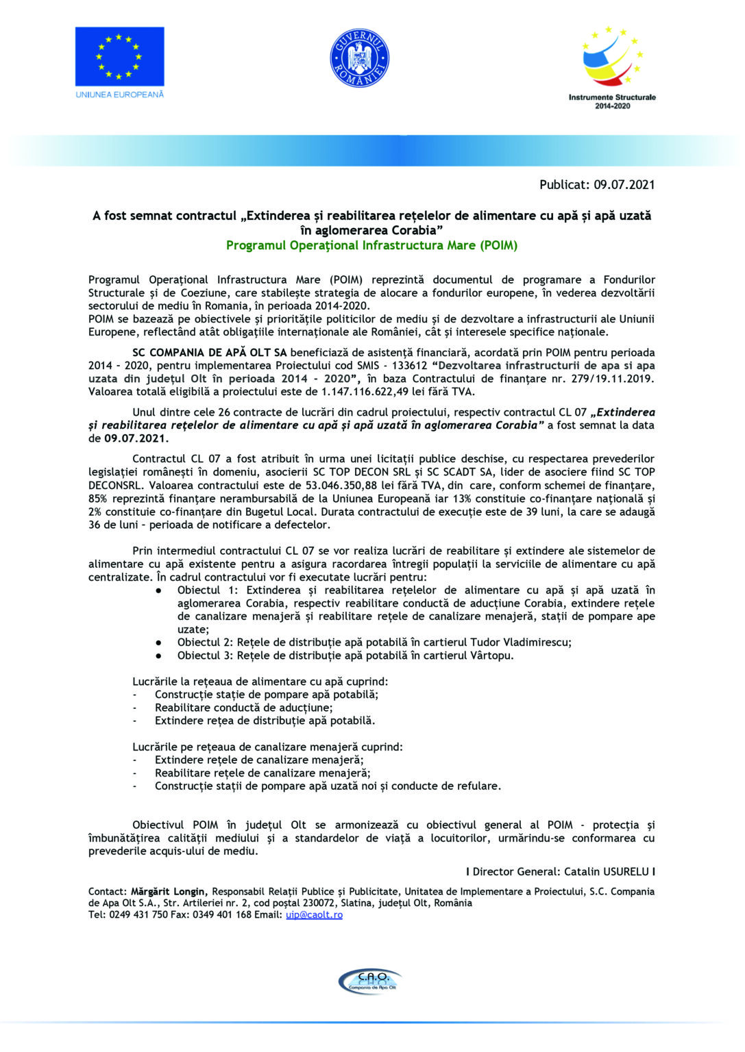 EconomieOltOlteniaA fost semnat contractul „Extinderea și reabilitarea rețelelor de alimentare cu apă și apă uzată în aglomerarea Corabia”. Programul Operațional Infrastructura Mare (POIM) Jurnalul Olteniei 6 decembrie 2022 Share SHARE Jurnalul Olteniei See Full Bio TAGGED:alimentareapaapa uzatacontractcorabiaextinderepoimreabilitareretele Distribuie acest articol Facebook Whatsapp Whatsapp Email Copy Link Print Articolul precedent Mănăstirea Arnota din judeţul Vâlcea a sărbătorit 385 de ani de atestare documentară Articolul următor Zeci de persoane lovite de fulger în India Ultima ora Gorj: agresori reținuți și monitorizați electronic 5 decembrie 2025 Suspect de tentativă de agresiune reținut de Poliția Dolj 5 decembrie 2025 Locuință din Gorj cuprinsă de flăcări 5 decembrie 2025 Distribuție Oltenia: Oltenii, mai interesați de energie și sustenabilitate 5 decembrie 2025 Semimaratonul Craiovei 2025: Record de participanți 5 decembrie 2025 Sancțiuni de peste 40.000 lei și o activitate suspendată la Băbeni 5 decembrie 2025 Oltenia, sub cod galben de vânt. Avertizare ANM 5 decembrie 2025 Lansare proiect: „Împădurirea unui teren agricol în comuna Dobrești, beneficiar SEINEA ILEANA-MIHAELA „ 5 decembrie 2025 Flăcări în toiul nopții la Berislăvești! Pompierii vâlceni au salvat locuința cuprinsă de incendiu 5 decembrie 2025 Un fost jucător de la Universitatea Craiova, inclus în echipa lunii noiembrie, în Liga 2 5 decembrie 2025