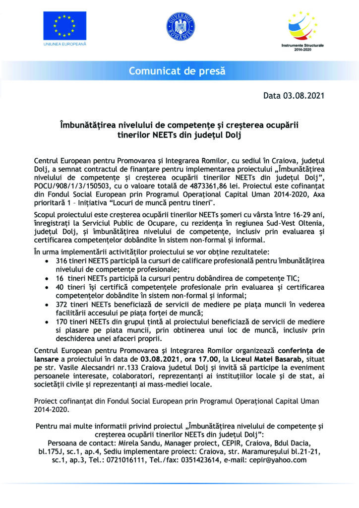 ActualitateDoljOlteniaÎmbunătățirea nivelului de competențe și creșterea ocupării tinerilor NEETs din județul Dolj Jurnalul Olteniei 2 august 2021 Share SHARE Jurnalul Olteniei See Full Bio Distribuie acest articol Facebook Whatsapp Whatsapp Email Copy Link Print Articolul precedent Accident cu doi minori, în Slatina Articolul următor Profesorii din Grecia care refuză vaccinarea, suspendați fără plată până la imunizare Ultima ora Se știe grupa în care poate juca România la Cupa Mondială din 2026 5 decembrie 2025 Dolj: Ajutoare sociale de peste 76 milioane lei 5 decembrie 2025 Cea de-a VII-a ediție a Semimaratonului Craiovei a avut loc sâmbătă, 18 octombrie 2025. 5 decembrie 2025 ANUNT PRIVIND ORGANIZAREA ACHIZITIEI DE UTILAJE . MINIEXCAVATOR – LOTUL 1, UTILAJ DE FORAT HIDRAULIC – LOTUL 2 – RELUATÃ 2 5 decembrie 2025 Modernizarea CF Filiași: Începe proiectarea 5 decembrie 2025 Testare gratuită HPV la Spitalul Județean Târgu Jiu 5 decembrie 2025 CE Oltenia raportează emisii scăzute de dioxid de carbon 5 decembrie 2025 DIICOT a destructurat un grup de proxenetism în Mehedinți 5 decembrie 2025 Legea pensiilor magistraților, atacată, din nou, la CCR 5 decembrie 2025 Magia Crăciunului Târgu Jiu: Seară de neuitat 5 decembrie 2025