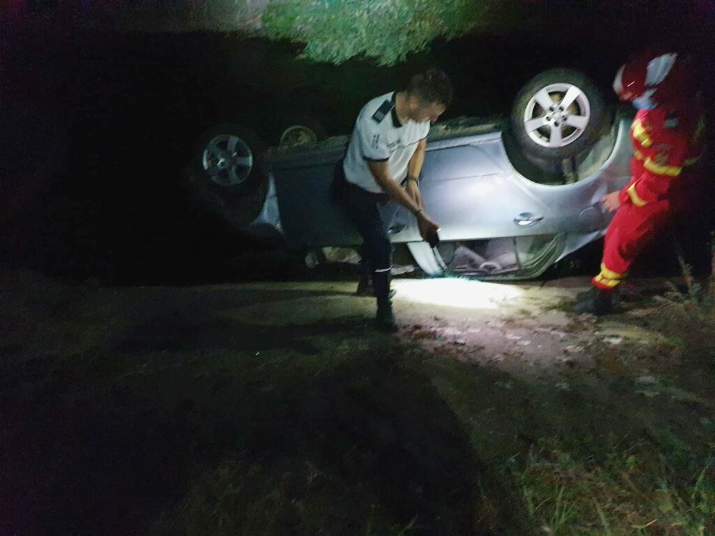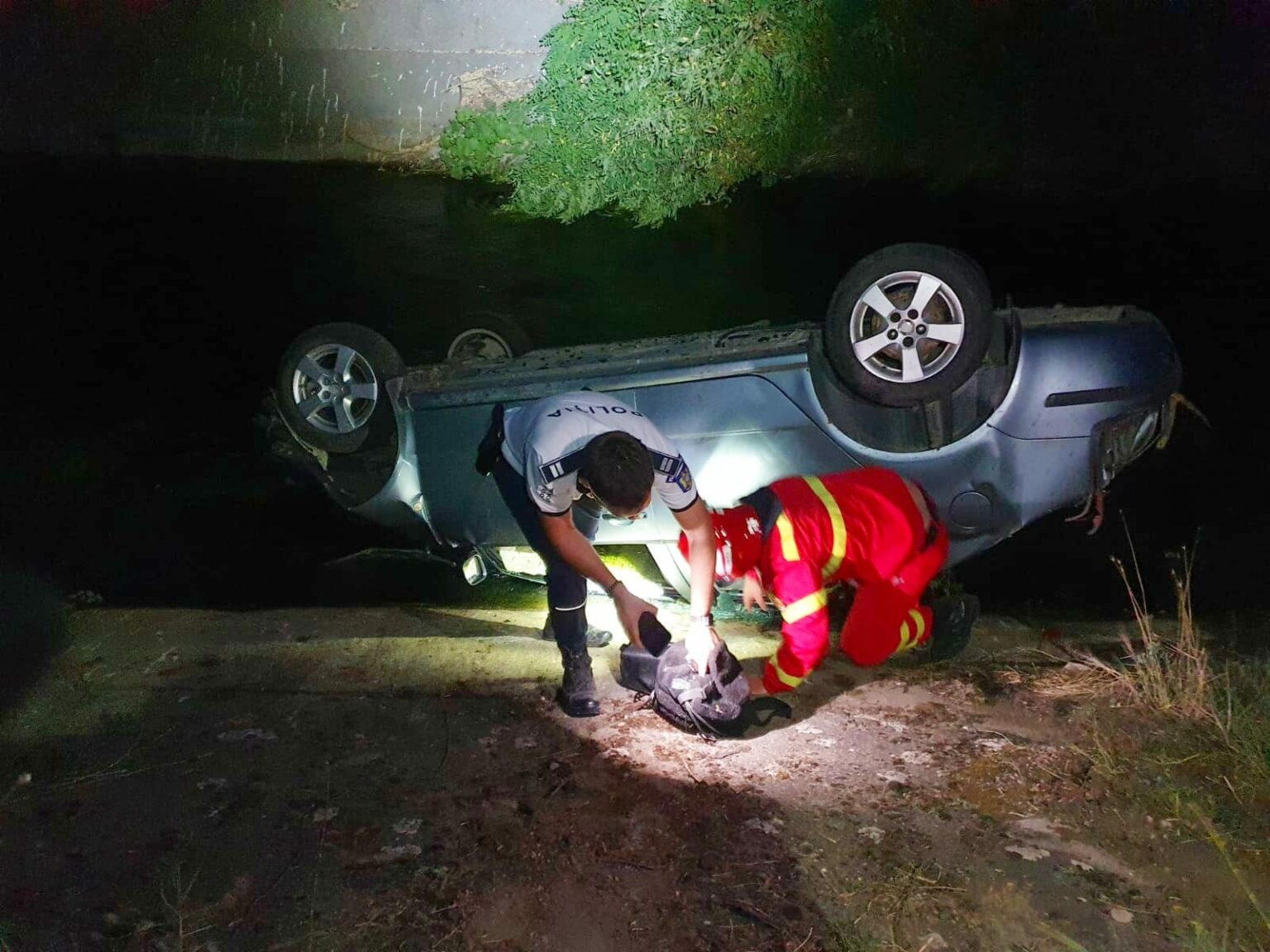 La sosirea echipajelor, autoturismul implicat în eveniment a fost găsit în afara carosabilului, răsturnat într-un canal colector, cu apă de circa 70 de centimetri, iar cele două victime se aflau în afara acestuia.