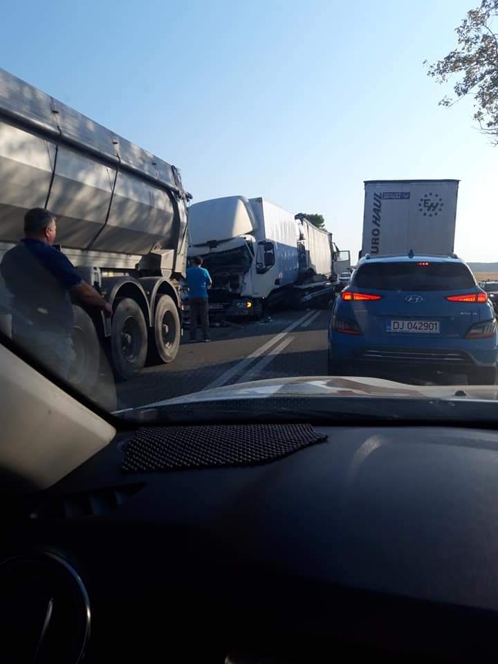 În urma impactului, trei autocamioane și un autoturism s-au lovit în lanț, traficul fiind blocat câteva ore bune, ciruclându-se apoi alternativ pe un singur sens.