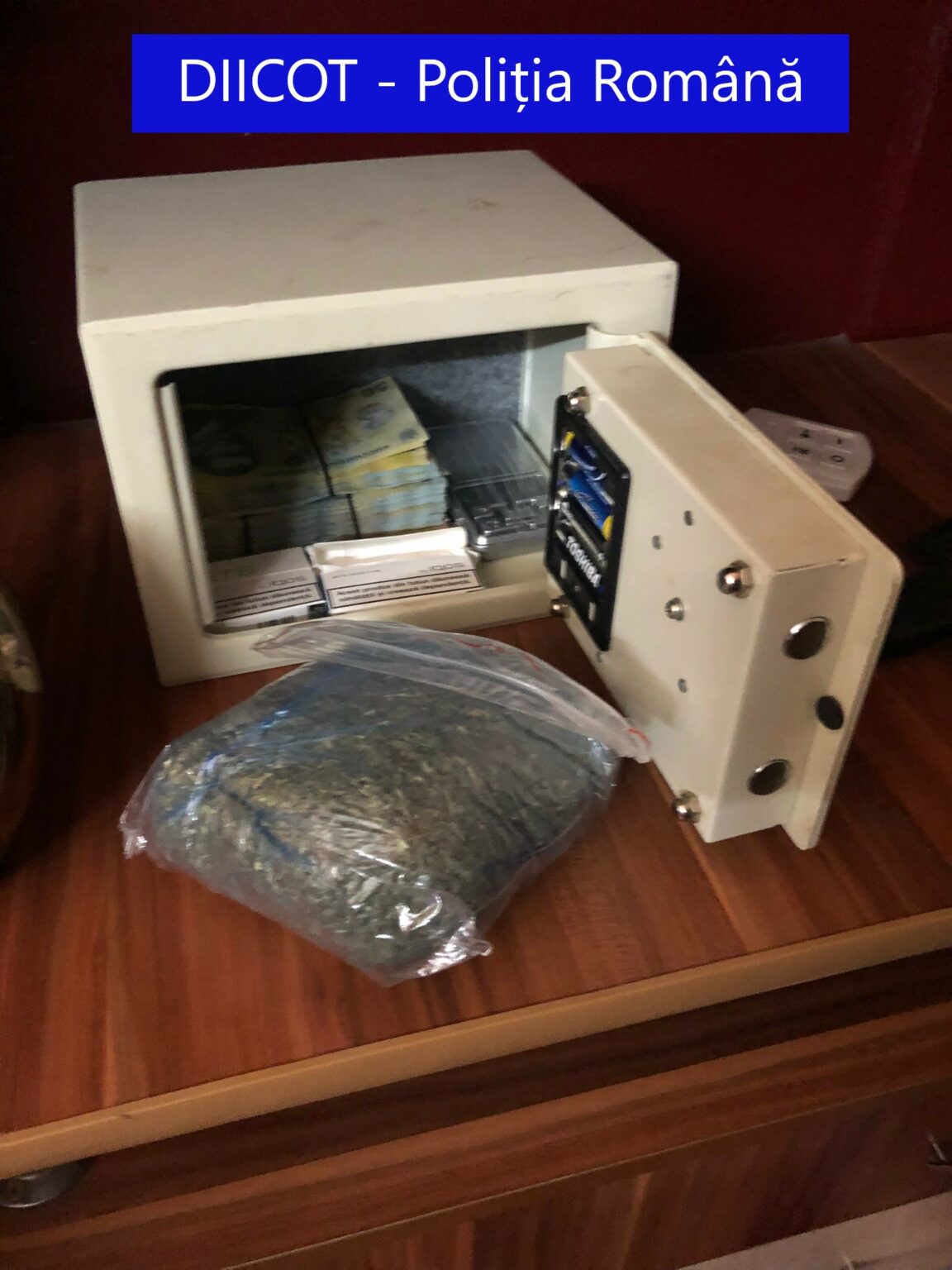 ”În urma perchezițiilor, au fost ridicate aproximativ 150 de grame de materiale vegetală și un pliculeț ce conține o substanță de culoare albă, posibil droguri de mare risc, suma de 36.000 de lei, un pistol cu bile din plastic, un cântar electronic, precum și mai multe săbii și cuțite”, se arată în comunicatul DIICOT.