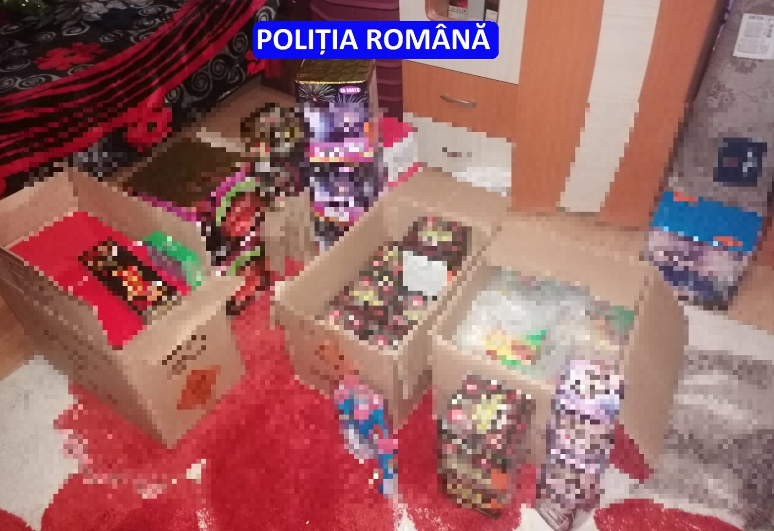 În urma perchezițiilor efectuate, poliţiştii au descoperit și identificat 1898 de obiecte de distracție cu conținut pirotehnic, din categoriile P1, F2, F3 și F4, ce ar fi fost deținute fără drept, în vederea comercializării, reprezentând cantitatea de aproximativ 250 de kilograme de articole pirotehnice, în valoare totală de aproximativ 10.000 de lei.