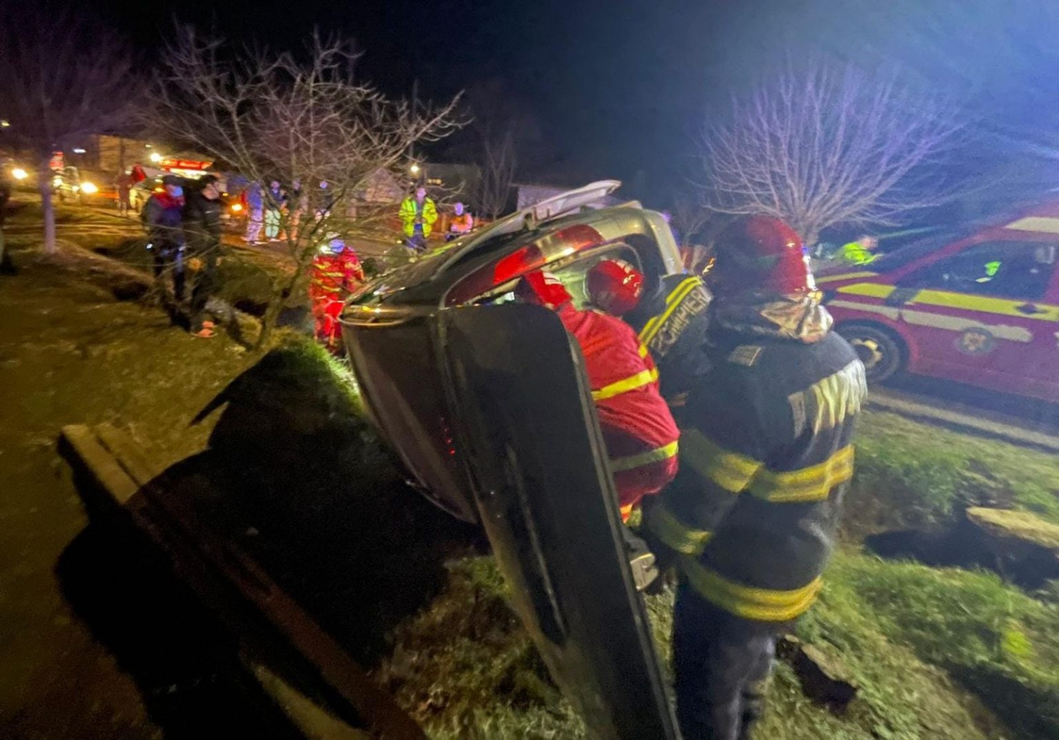„Cei doi pacienți transportați la spital au 50 de ani și 35 de ani, sunt din comuna Ghimpețeni, ambii cu traumatism cranio-facial și excoriații la nivelul feței, preluați de echipajul SMURD și echipajul SAJ cu medic. La locul evenimentului au acționat pompierii Detașamentului Slatina, cu o autospecială pentru descarcerare, o autospecială pentru intervenție și descarcerare și un echipaj SMURD, dar și trei echipaje de la Serviciul de Ambulanță Olt”, confirm ISU Olt.