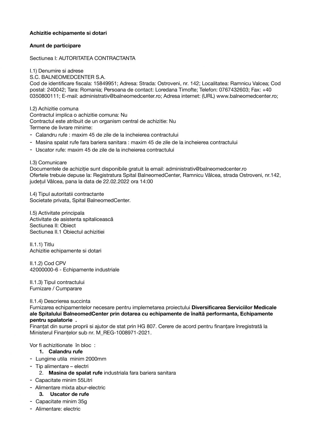 EconomieAchiziție echipamente și dotări  Jurnalul Olteniei 14 februarie 2022 Share SHARE 5 Jurnalul Olteniei See Full Bio TAGGED:achizitieanuntbalneomeddotariechipamentespital Distribuie acest articol Facebook Whatsapp Whatsapp Email Copy Link Print Articolul precedent Achiziție echipamente și dotări Articolul următor Putin a găsit o masă chiar mai lungă decât cea de la întâlnirea cu Macron! Liderul de la Kremlin a discutat cu miniștrii săi de externe și al apărării Ultima ora Legea pensiilor magistraților, atacată, din nou, la CCR 5 decembrie 2025 Magia Crăciunului Târgu Jiu: Seară de neuitat 5 decembrie 2025 A dat bancnote false cu „Prop Copy”: Percheziții în Mehedinți 5 decembrie 2025 Căprioare și ponei, de Crăciun, în Parcul Romanescu 5 decembrie 2025 Gorj: agresori reținuți și monitorizați electronic 5 decembrie 2025 Suspect de tentativă de agresiune reținut de Poliția Dolj 5 decembrie 2025 Locuință din Gorj cuprinsă de flăcări 5 decembrie 2025 Distribuție Oltenia: Oltenii, mai interesați de energie și sustenabilitate 5 decembrie 2025 Semimaratonul Craiovei 2025: Record de participanți 5 decembrie 2025 Sancțiuni de peste 40.000 lei și o activitate suspendată la Băbeni 5 decembrie 2025