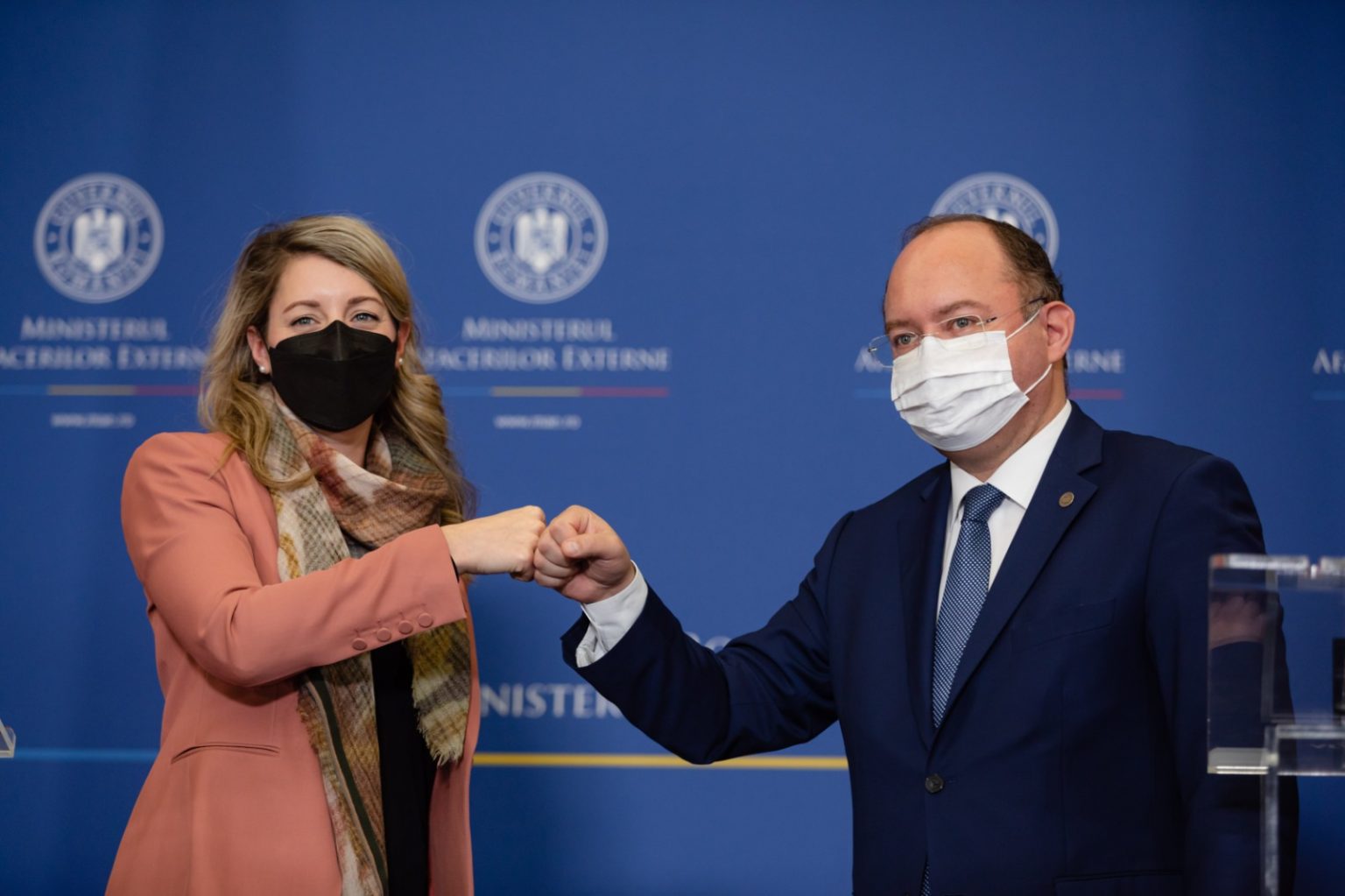 Miniştrii de externe român şi canadian, Bogdan Aurescu şi Melanie Joly, au susţinut o conferinţă comună de presă.