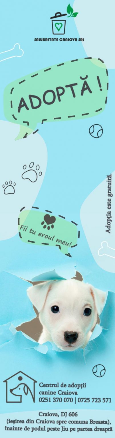 Reamintim faptul că persoanele care doresc să ofere o casă unui blănos trebuie să vină la Centrul de adopții canine Craiova și să își aleagă un cățel. Accesul în adăpost și adopția se realizează în baza actului de identitate.