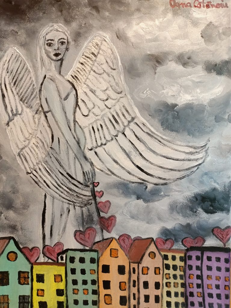 Într-un singur an, Oana a avut parte de patru expoziții: „În copilărie am descoperit ca-mi place să pictez, însă nu am aprofundat niciodată acest hobby, fiind de asemenea pasionată de literatură și filosofie. Adult fiind, am redescoperit pictura și, în 2015 am avut o expoziție în pastel la Casa de Cultură Traian Demetrescu din Craiova. A urmat o pauză apoi, în perioada pandemiei, am regăsit curajul de a-mi așterne gândurile pe pânză. Într-un singur an, am expus la Muzeul Internațional de Artă Magog, Franța, la Galeria Unirea din Târgu Mureș, la Salonul Internațional de Artă Naiva Policarp Vacarciuc, Iași, la Salonul de Artă Naiva și Intuitiva din Belogradcik, Bulgaria și la multe alte evenimente de artă desfășurate, din cauza pandemiei, online”, a povestit aceasta.
