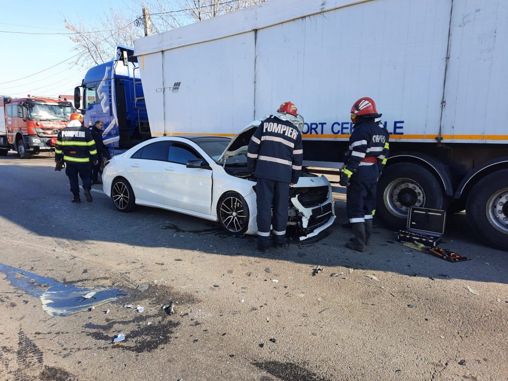 Un autoturism condus de un bărbat, de 60 de ani, a intrat în coliziune cu un autoturism condus de o tânără, de 22 ani, iar din coliziune, autoturismul femeii a ricoșat și a acroșat un ansamblu auto format din cap tractor și semiremorcă, condus de un bărbat, de 53 de ani.