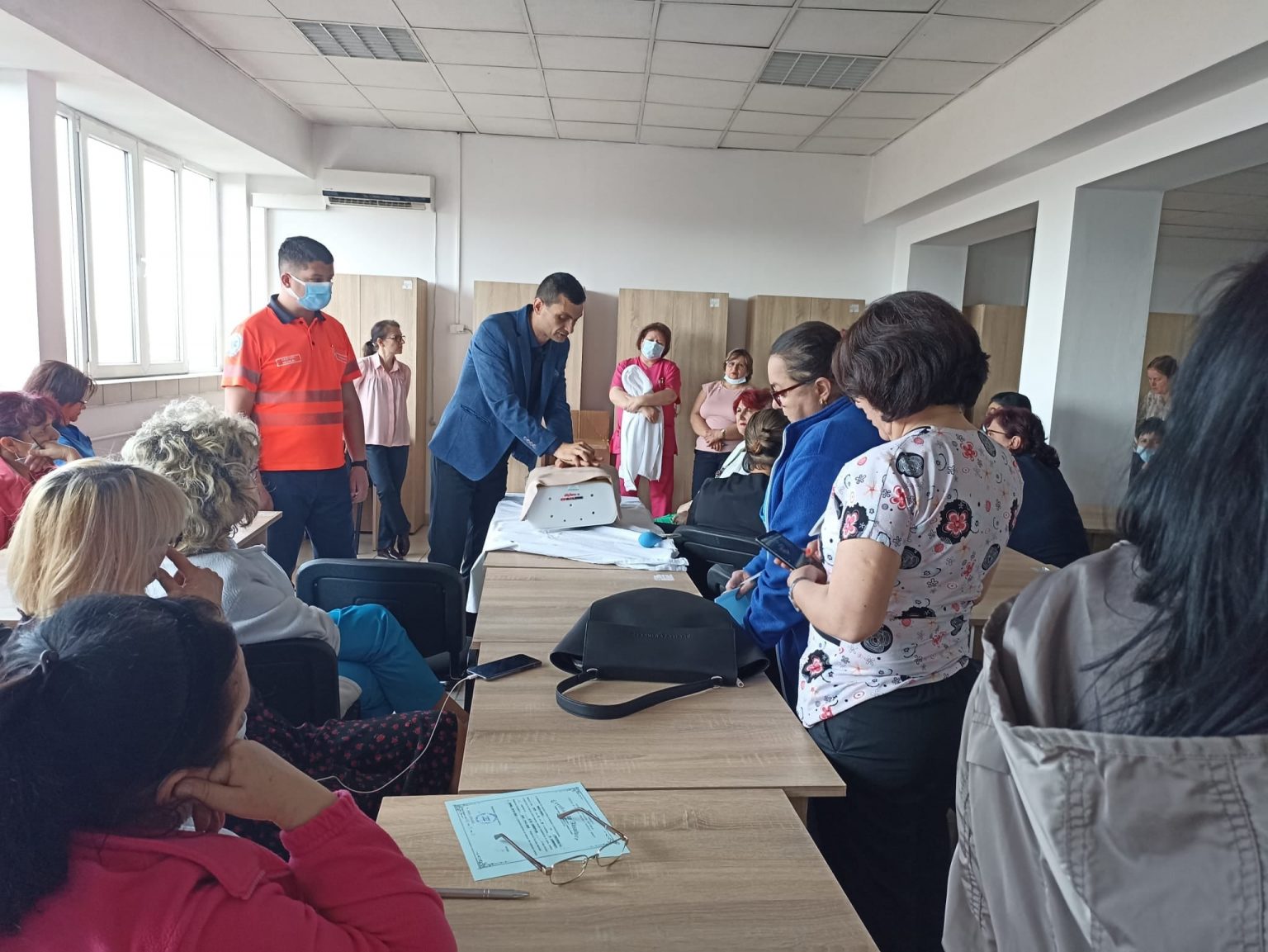 În cadrul acestei prezentări, folosindu-se de un manechin și de accesoriile pentru exersarea tehnicilor de resuscitare și salvare în urgențe, cei doi invitați de la Serviciul de Ambulanță le-au prezentat asistentelor medicale tehnicile care se aplică în cazul apariției unui stop cardio-respirator.