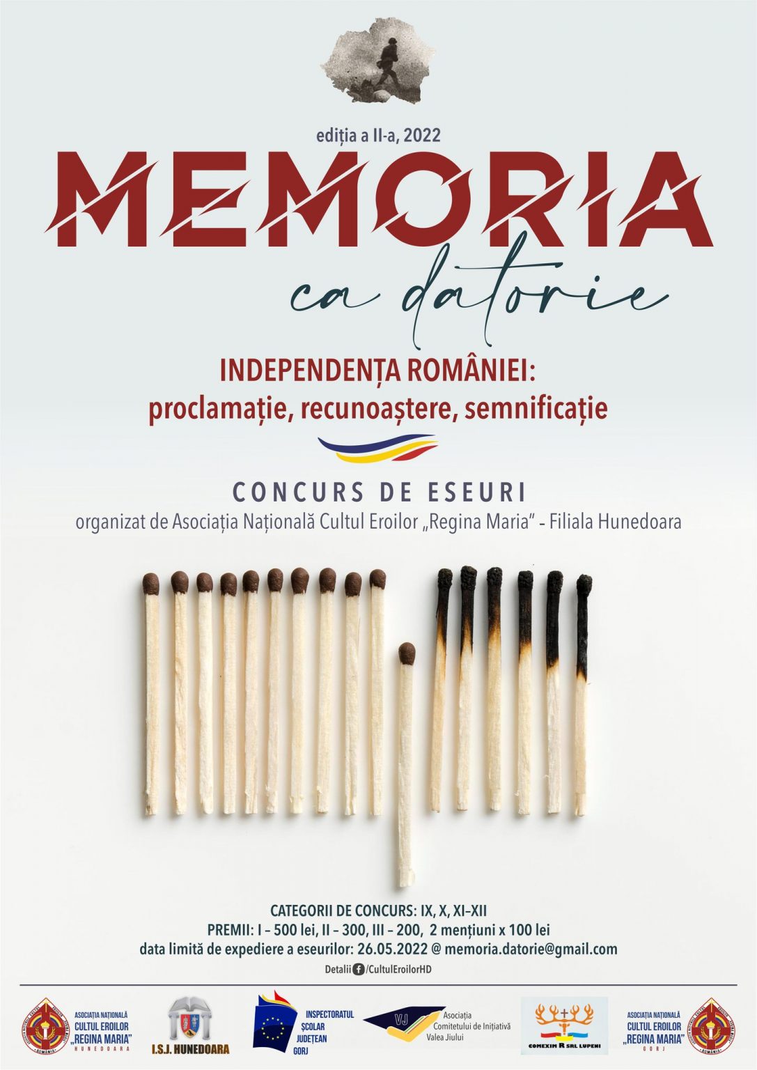 „Memoria la datorie”, concursul dedicat Zilei Eroilor, se adresează elevilor de liceu din județele Hunedoara și Gorj, organizat pe trei categorii: clasele IX, X și XI–XII. Conform Asociației Naționale Cultul Eroilor „Regina Maria” HD Elevii care doresc să participe la această competiție trebuie să trimită un eseu în care să abordeze semnificația Zilei Eroilor în memoria colectivă, din perspectivă personală.