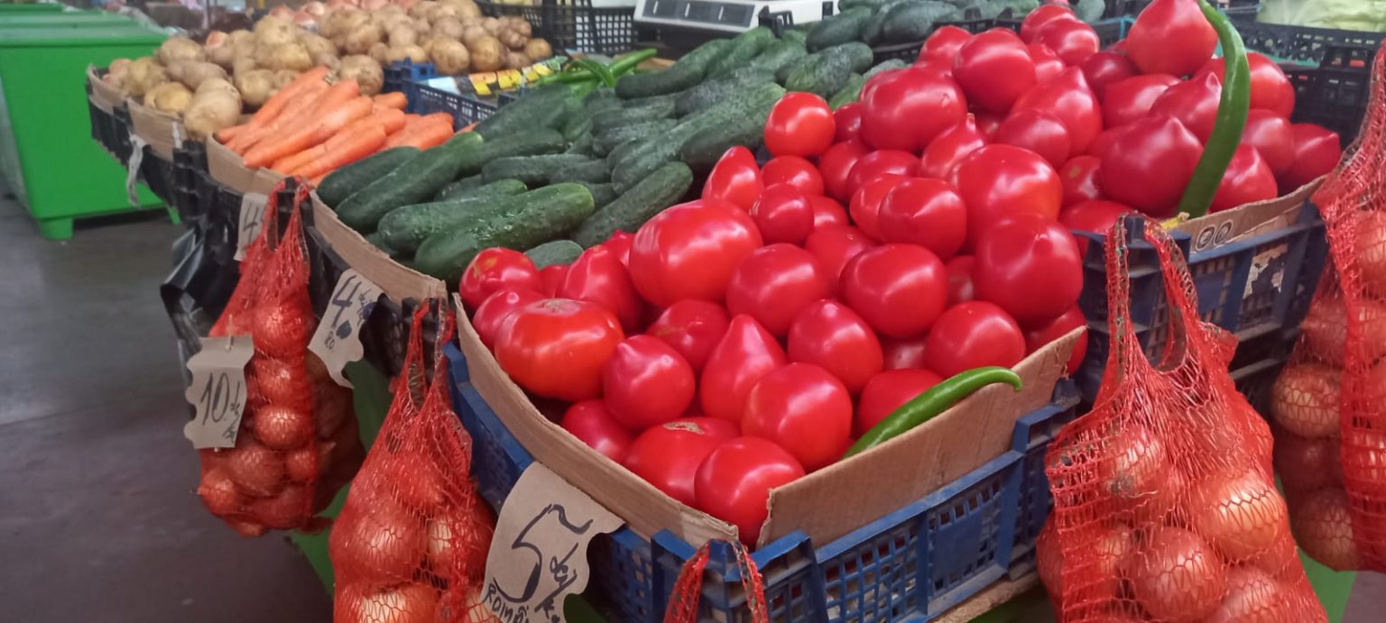 Piața Centrală din Craiova, puțin peste ora 10 și jumătate. Comercianți și cumpărători umpleau laolaltă hala cu legume și fructe. Clienții, majoritatea de vârsta a 3-a testau piața cu ochii și chiar cu mâinile. Cei mai mulți mergeau către lădițele cu produse românești, în special roșii.