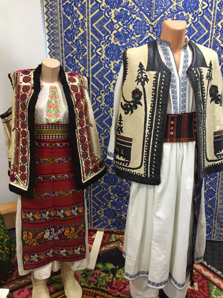 Avem costumul specific din Dăbuleni. Ce este foarte interesant la el este acest cojoc care are foarte multe elemente ce se regăsesc în vechile cojoace de Vădastra. Sunt foarte multe elemente, de pildă această spirală care predomină în zona de sud a țării noastre, dar mai cu seamă în zona de lângă Dunăre. Mai avem boscelele, șoarțe, în această localitate fiind cunoscute sub această denumire, cu motive fitomorfe. Avem aici motivul viței de vie. De asemenea, lângă se află un costum bărbătesc de Dăbuleni cu cojoc, cămașă lungă croită în clin, țesută în război. Predomină culoarea albastră, lucru pe care îl întâlnim doar la costumul de Dăbuleni. Mai avem un costum bogat în simbolistică ce are reprezentat pe boscea mai mulți lei, crucea și mai joc cocoșul. Cel din urmă alungă spriritele rele și aduce zorii zilei. Această iie este din comuna Rast, este cusută în muște. Alte ii pot fi cusute la fir sau țesute în război. Croiul acestei cămăși este foarte interesant deoarece are această placă poziționată în partea superioară a cămășii femeiești. Are și acest șabat foarte minuțios lucrat”, a spus Alexandru Lila, organizatorul expoziției.