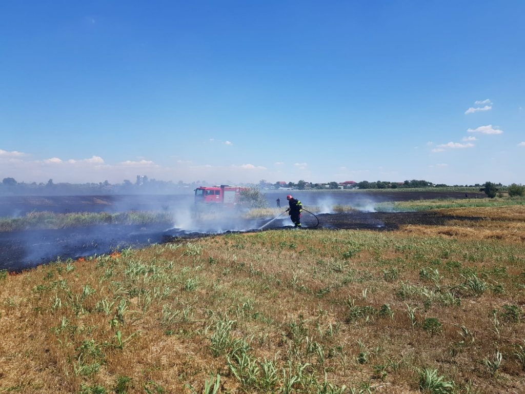 Potrivit ISU Dolj, ard peste 10 hectare de vegetație uscată, dar și o tonă de gunoi menajer, aruncat de oameni în câmp.