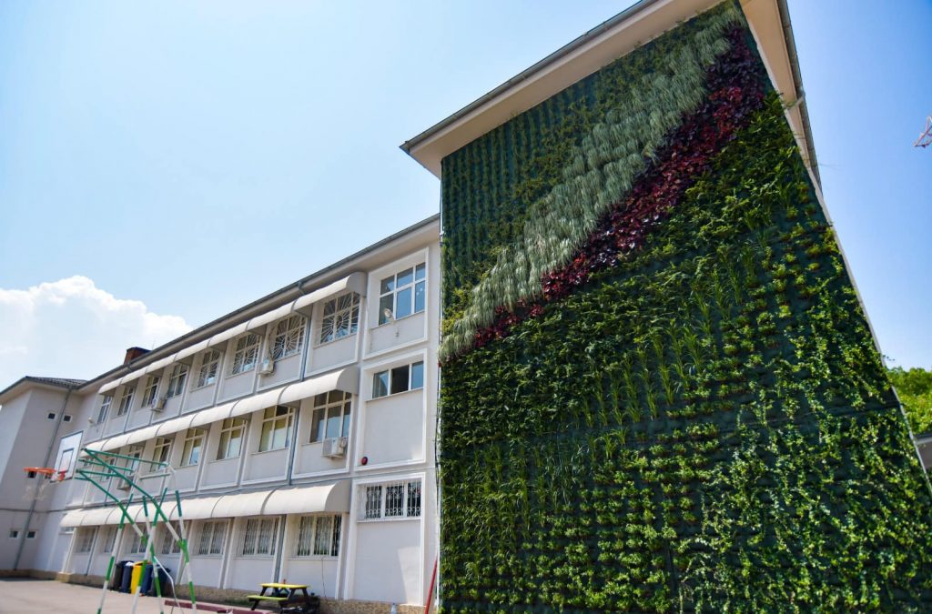 Școala Gimnazială „Mircea Eliade” din Craiova este prima clădire din oraș care are deja un perete verde. Proiectul a fost realizat printr-o tehnologie specială prin care plantele nu afectează peretele clădirii: „Acest tip de perete verde constă într–o tehnologie specială prin care plantele nu afectează peretele clădirii, pentru că nu sunt amplasate direct pe acesta. În schimb, fiecare ghiveci este montat individual, fiind conectat la sisteme de senzori de umiditate și temperatură care declanșează sistemul de udare prin picurare. Temperatura optimă este asigurată nu doar vara, ci și în sezonul rece, fiecare detaliu legat de plante, apă, temperatură putând fi controlat exclusiv cu ajutorul unei aplicații de pe telefon. Pe lângă elementul de design, acest perete asigură și o izolare fonică și termică deosebită, fiind și un element de purificare a aerului în zonă. Acesta este un proiect pilot și va trebui aplicat și pe blocurile nou construite în Craiova, ca urmare a strategiei de „green city” aprobată de Consiliul Local anul trecut”, a explicat Olguța Vasilescu.