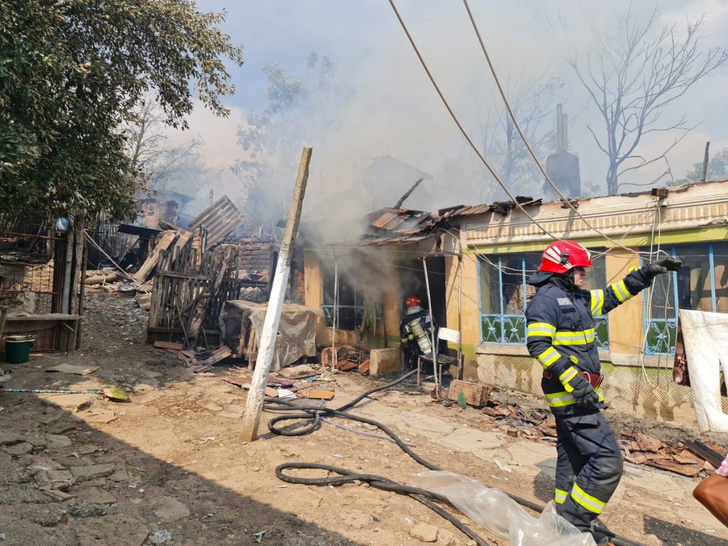 Mai multe case au fost cuprinse de flăcări la Drăgotești. Pompierii sunt acum la fața locului.