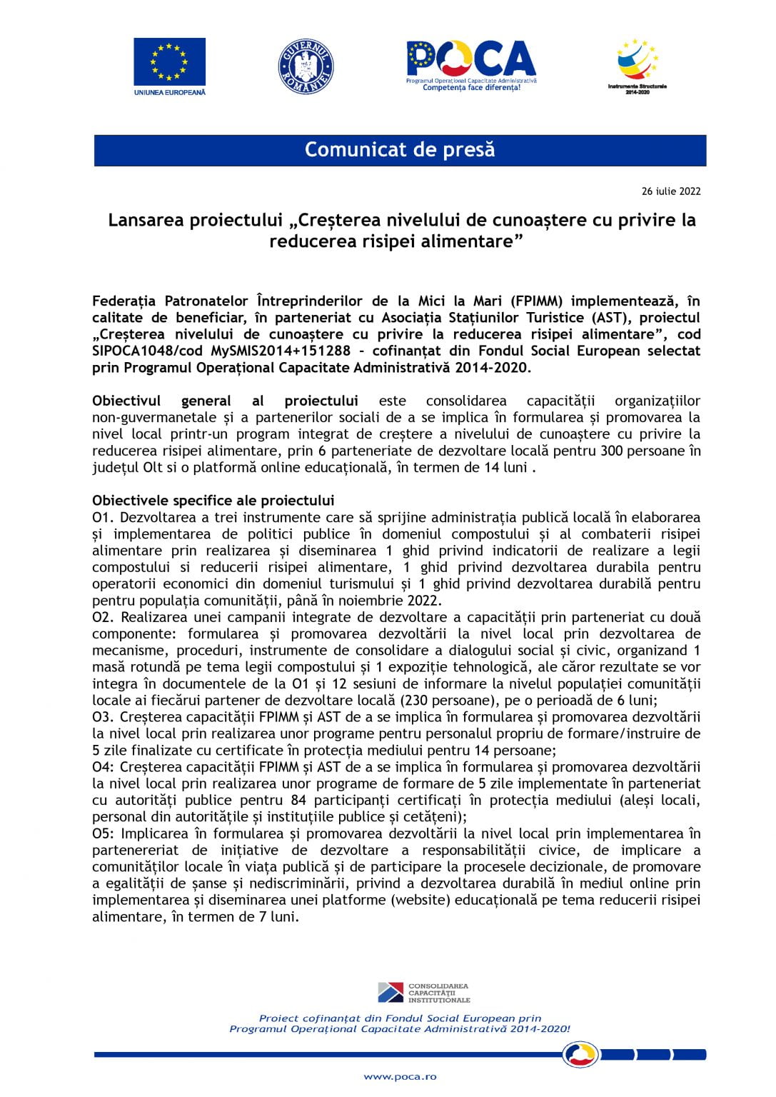 EconomieLansarea proiectului „Creșterea nivelului de cunoaștere cu privire la reducerea risipei alimentare” Jurnalul Olteniei 26 iulie 2022 Share SHARE Jurnalul Olteniei See Full Bio TAGGED:alimentecunoasterelansareproiectrisipa Distribuie acest articol Facebook Whatsapp Whatsapp Email Copy Link Print Articolul precedent Rafila: Introducerea obligativităţii purtării măştii s-ar putea să nu dea rezultate Articolul următor Porci morți, în câmp, la Rojiște Ultima ora Gorj: agresori reținuți și monitorizați electronic 5 decembrie 2025 Suspect de tentativă de agresiune reținut de Poliția Dolj 5 decembrie 2025 Locuință din Gorj cuprinsă de flăcări 5 decembrie 2025 Distribuție Oltenia: Oltenii, mai interesați de energie și sustenabilitate 5 decembrie 2025 Semimaratonul Craiovei 2025: Record de participanți 5 decembrie 2025 Sancțiuni de peste 40.000 lei și o activitate suspendată la Băbeni 5 decembrie 2025 Oltenia, sub cod galben de vânt. Avertizare ANM 5 decembrie 2025 Lansare proiect: „Împădurirea unui teren agricol în comuna Dobrești, beneficiar SEINEA ILEANA-MIHAELA „ 5 decembrie 2025 Flăcări în toiul nopții la Berislăvești! Pompierii vâlceni au salvat locuința cuprinsă de incendiu 5 decembrie 2025 Un fost jucător de la Universitatea Craiova, inclus în echipa lunii noiembrie, în Liga 2 5 decembrie 2025