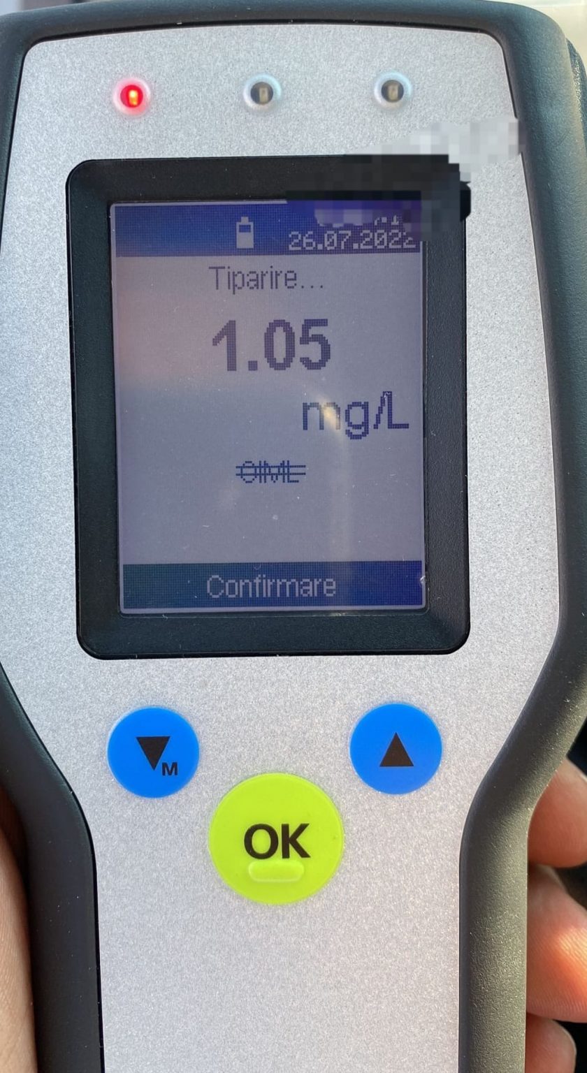 Un bărbat de 55 de ani, din Craiova, a fost prins beat la volan, pe strada Pelendava. Acesta a fost testat cu aparatul alcooltest, care a indicat o concentrație de 1,05 mg/l alcool pur în aerul expirat.
