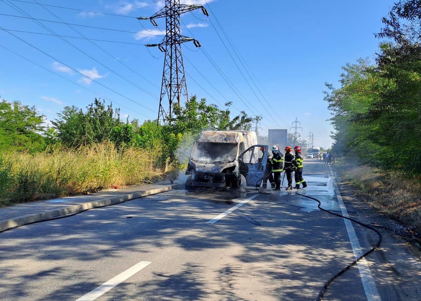 În urma evenimentului, autoutilitara a ars în proporție de 50 la sută și nu s-au înregistrat victime.
