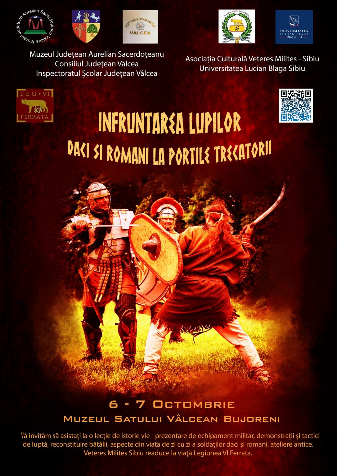 Muzeul Județean Aurelian Sacerdoţeanu Vâlcea va derula la începutul lunii ochtombrie evenimentul „Înfruntarea Lupilor”. Cu sprijinul CJ Vâlcea, a unei asociații culturale, dar și a Universității Lucian Blaga din Sibiu, evenimenul se vrea unul care să atragă public în aflarea informațiilor cu privire la cucerirea Daciei de către armata romană condusă de Traian.