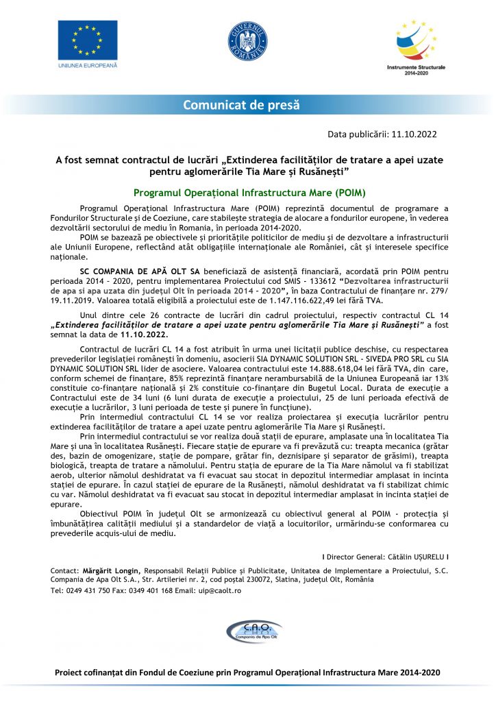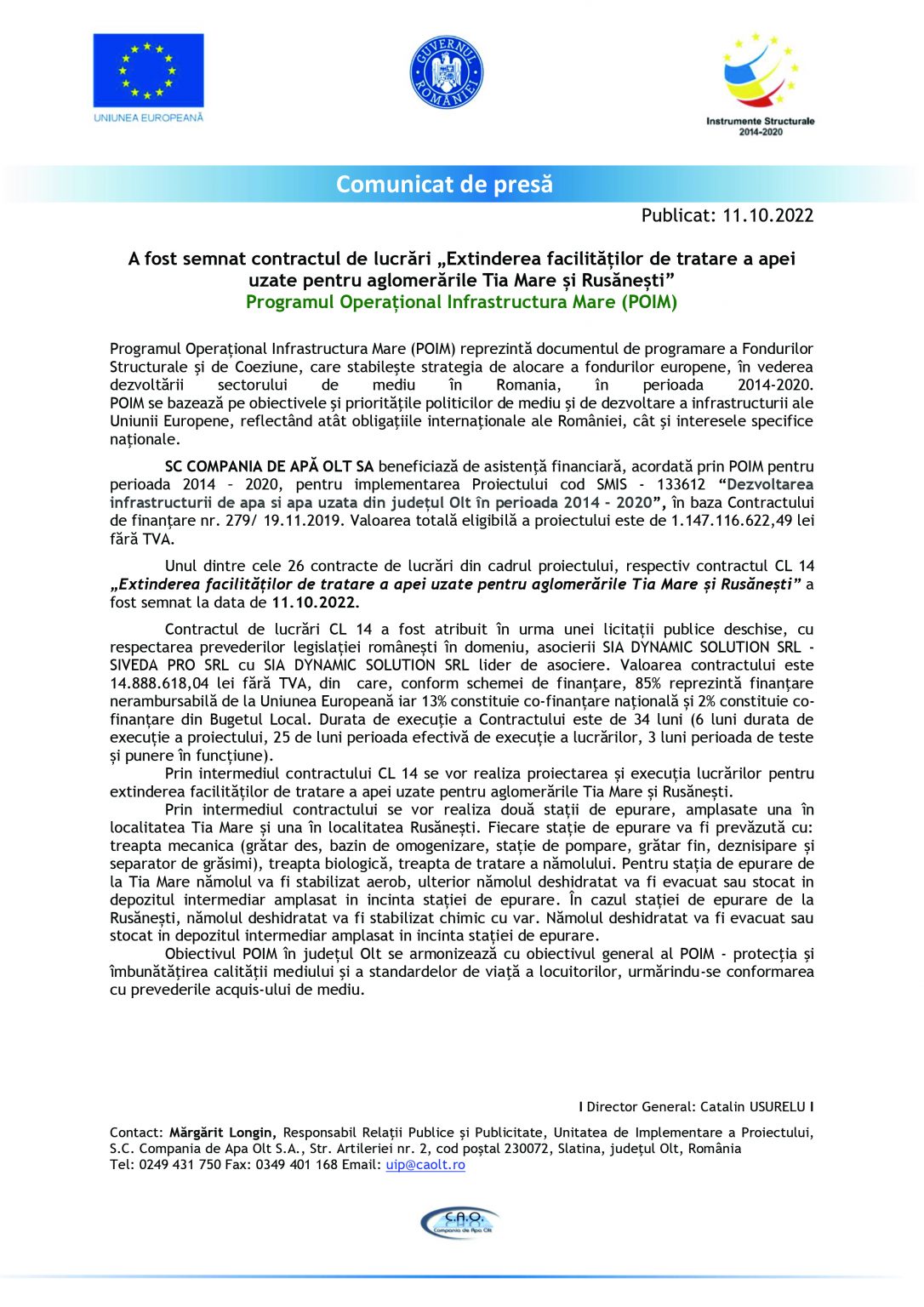 EconomieA fost semnat contractul de lucrări „Extinderea facilităților de tratare a apei uzate pentru aglomerările Tia Mare și Rusănești” – Programul Operațional Infrastructura Mare (POIM) Jurnalul Olteniei 6 decembrie 2022 Share SHARE Jurnalul Olteniei See Full Bio Distribuie acest articol Facebook Whatsapp Whatsapp Email Copy Link Print Articolul precedent O aplicație gratuită de citit pentru copii, lansată în România Articolul următor Mehedinți. Înarmat cu un pistol cu bile a intrat peste o familie în casă, cerând să îi dea bani Ultima ora Se știe grupa în care poate juca România la Cupa Mondială din 2026 5 decembrie 2025 Dolj: Ajutoare sociale de peste 76 milioane lei 5 decembrie 2025 Cea de-a VII-a ediție a Semimaratonului Craiovei a avut loc sâmbătă, 18 octombrie 2025. 5 decembrie 2025 ANUNT PRIVIND ORGANIZAREA ACHIZITIEI DE UTILAJE . MINIEXCAVATOR – LOTUL 1, UTILAJ DE FORAT HIDRAULIC – LOTUL 2 – RELUATÃ 2 5 decembrie 2025 Modernizarea CF Filiași: Începe proiectarea 5 decembrie 2025 Testare gratuită HPV la Spitalul Județean Târgu Jiu 5 decembrie 2025 CE Oltenia raportează emisii scăzute de dioxid de carbon 5 decembrie 2025 DIICOT a destructurat un grup de proxenetism în Mehedinți 5 decembrie 2025 Legea pensiilor magistraților, atacată, din nou, la CCR 5 decembrie 2025 Magia Crăciunului Târgu Jiu: Seară de neuitat 5 decembrie 2025