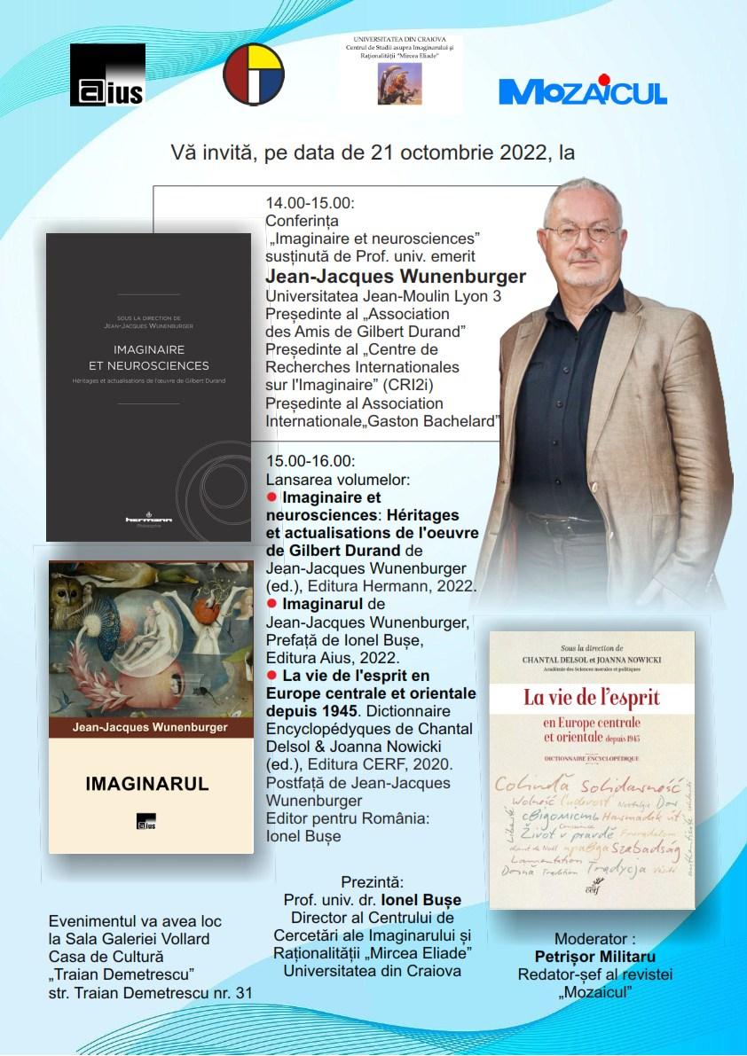 Invitatul de onoare este Jean-Jacques Wunenburger, profesor emerit al Universității „Jean Moulin”, Lyon 3, fondator al Centrului „Gaston Bachelard” de la Universitatea Bourgogne din Dijon, inițiatorul mai multor centre de cercetare ale imaginarului în Europa, America și Asia, președinte al „Asociației Prietenilor lui Gilbert Durand”, al „Asociației Internaționale Gaston Bachelard” și al „Centrelor Internaționale de Cercetare ale Imaginarului” – CRI2i.