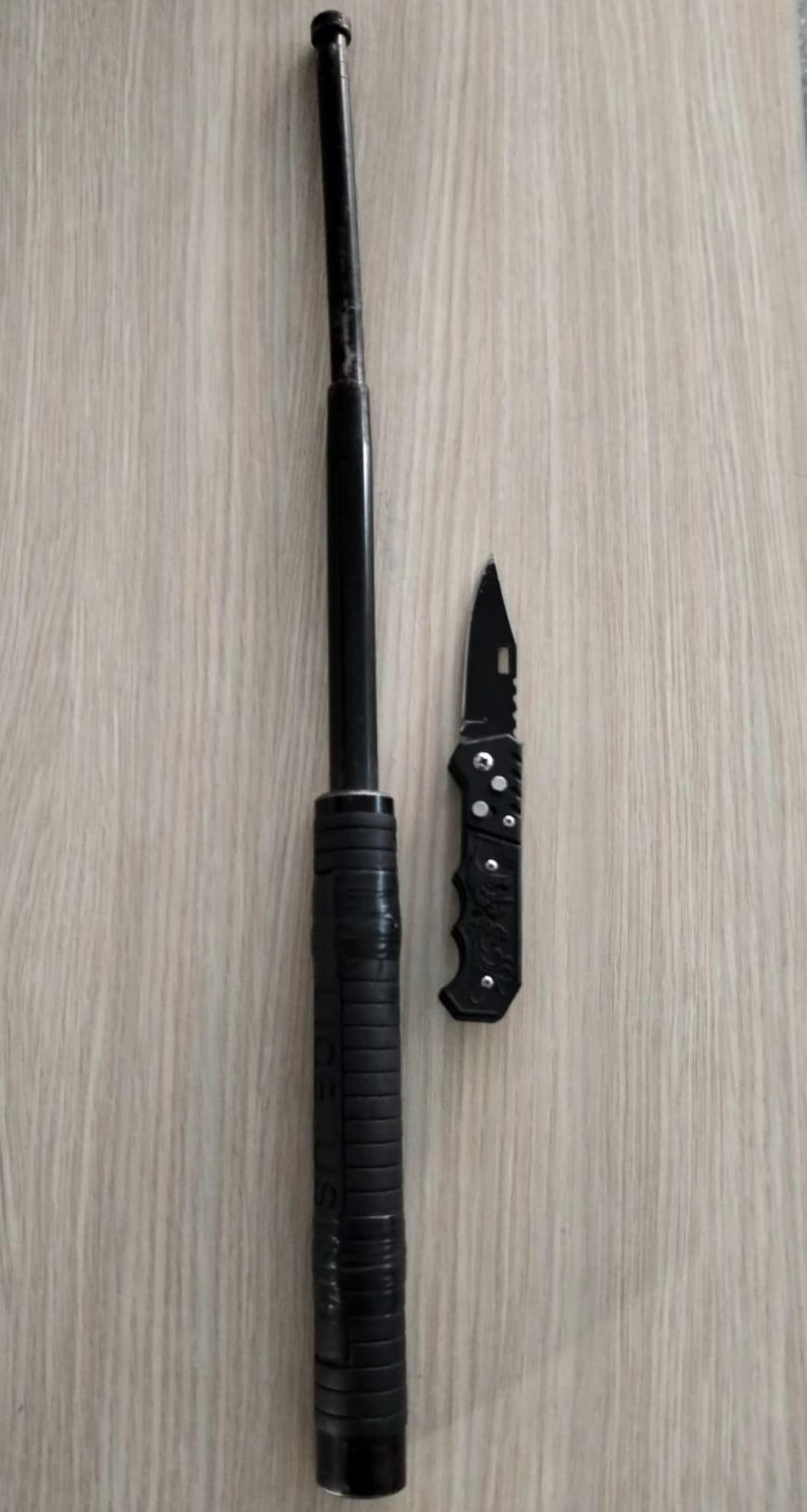 Un tânăr de 20 de ani a fost surprins de jandarmi, având asupra sa, cu un baston telescopic și un cuțit, cu lama în lungime de aproximativ 8 cm.