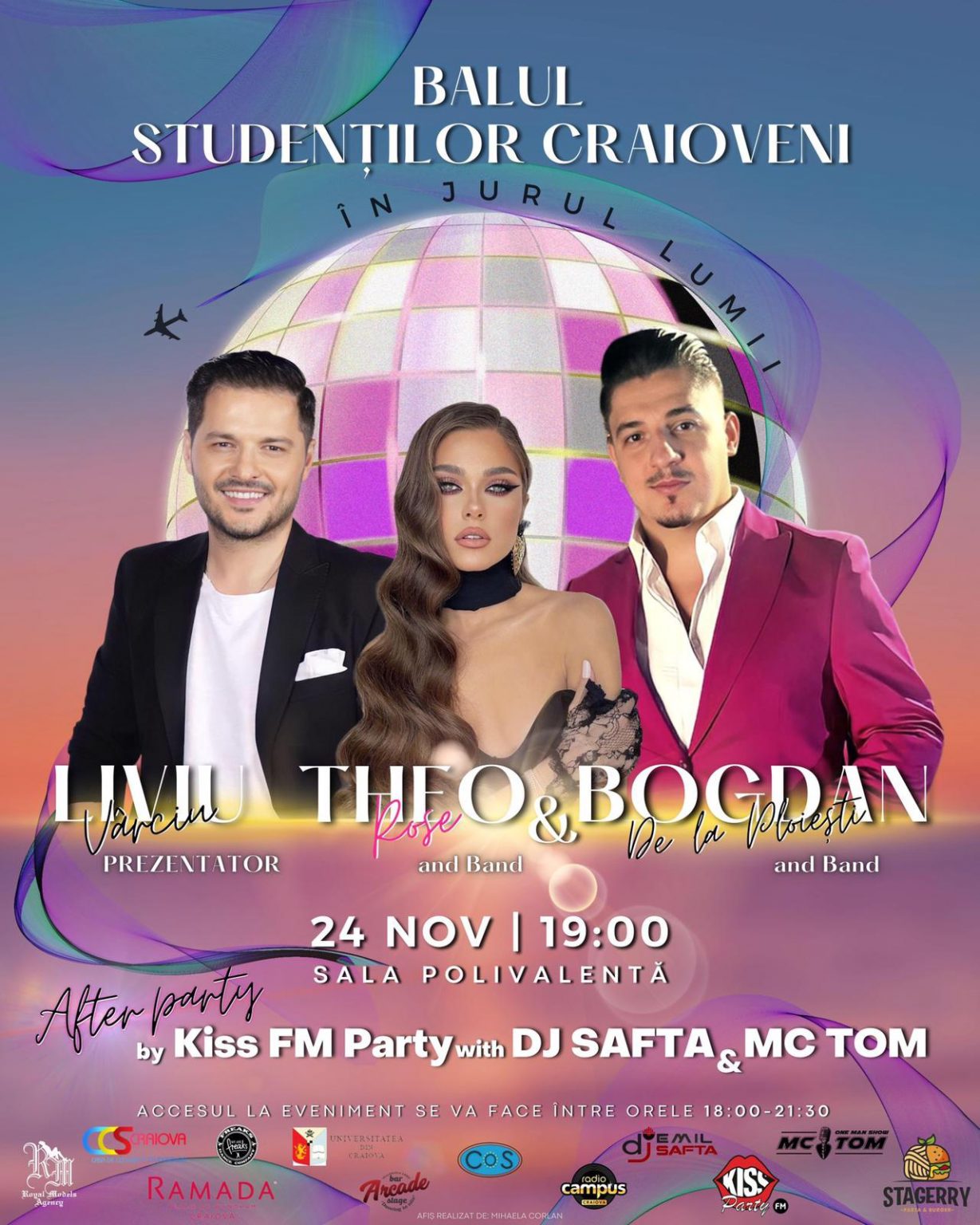 Suntem foarte entuziasmați de conceptul pe care îl propunem pentru Balul Studenților Craioveni. După 2 ani pandemici, vă invităm să fiți alături de noi, pentru a ne distra și a face bine împreună. Cei doi artiști de top, Theo Rose și Bogdan de la Ploiești, împreună cu band-ul vor face un super show pe scena Sălii Polivalente, în data de 24 Noiembrie.
